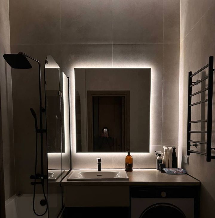 Санузел: стиральная машина, ванна, полотенцесушитель.