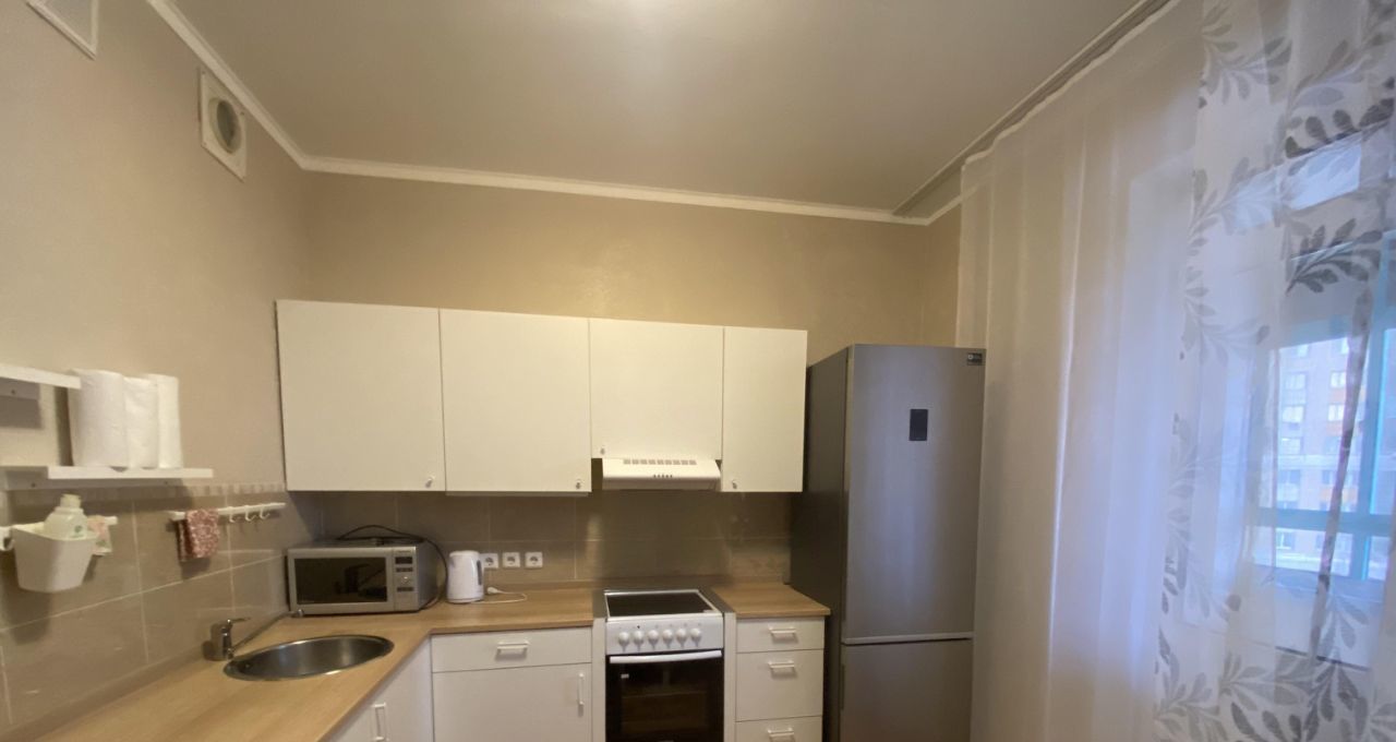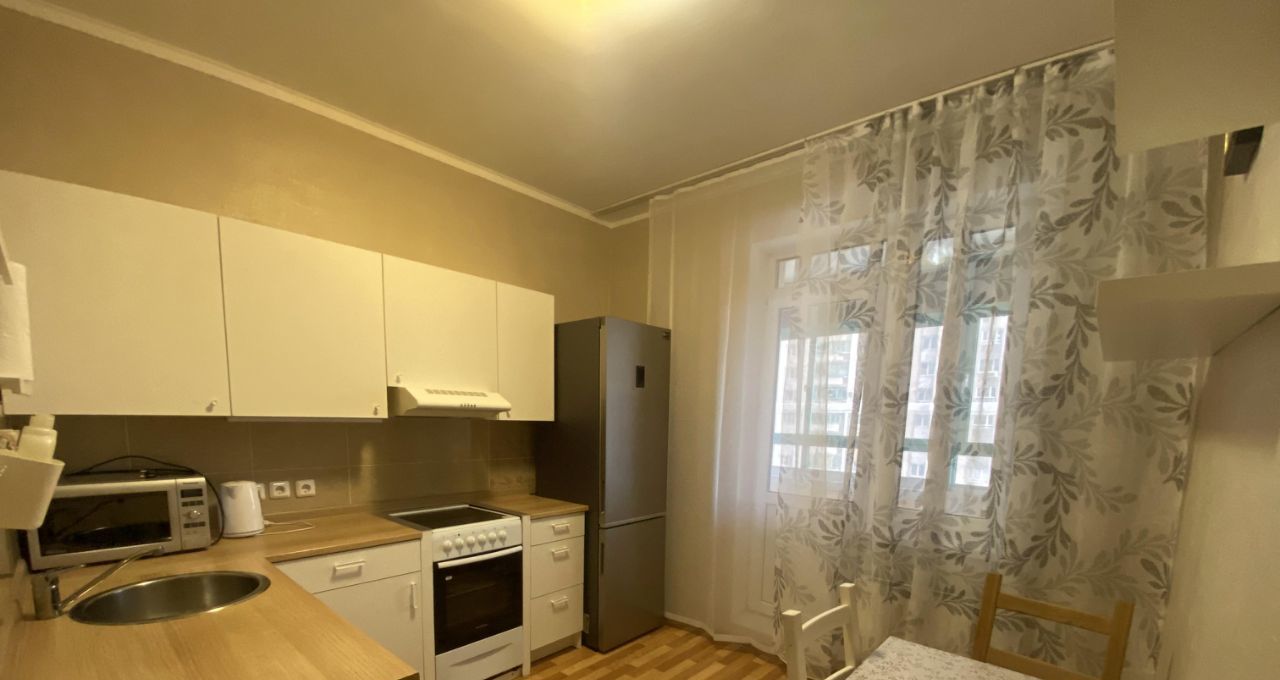 Имеется вся необходимая мебель и бытовая техника: холодильник, новая варочная панель, духовой шкаф, свч-печь, встроенный шкаф, стиральная машинка, телевизор и т.д.