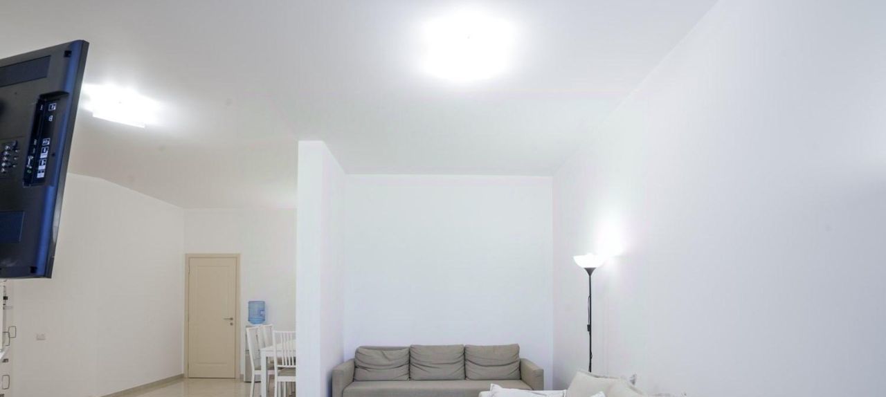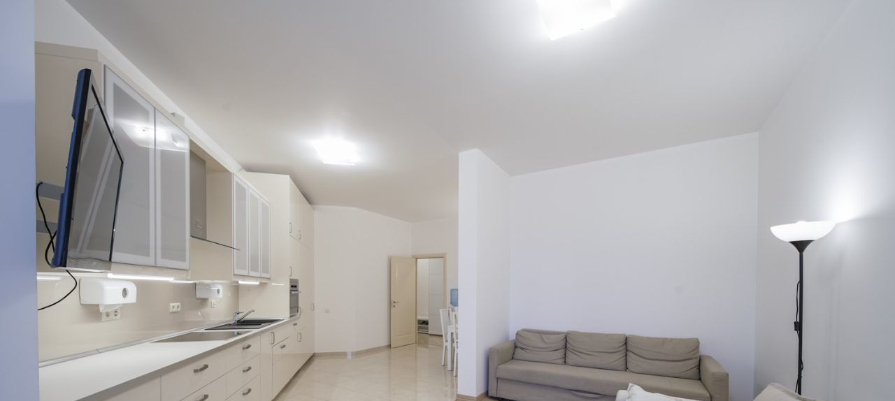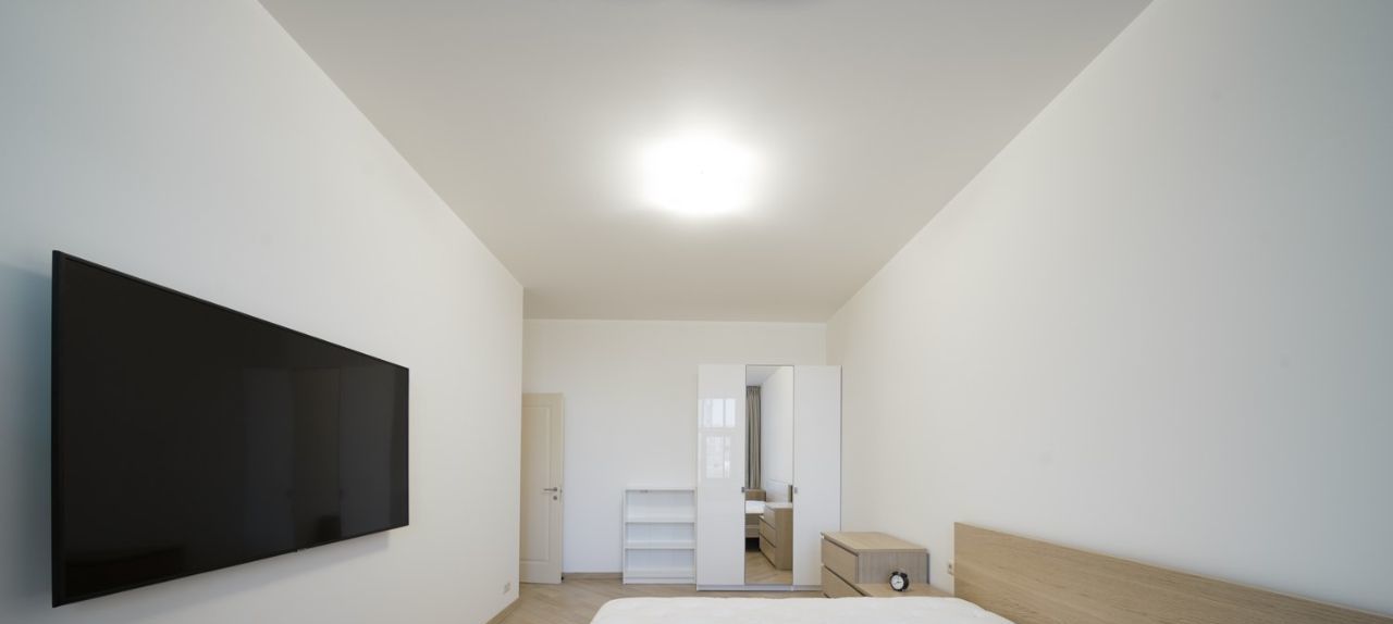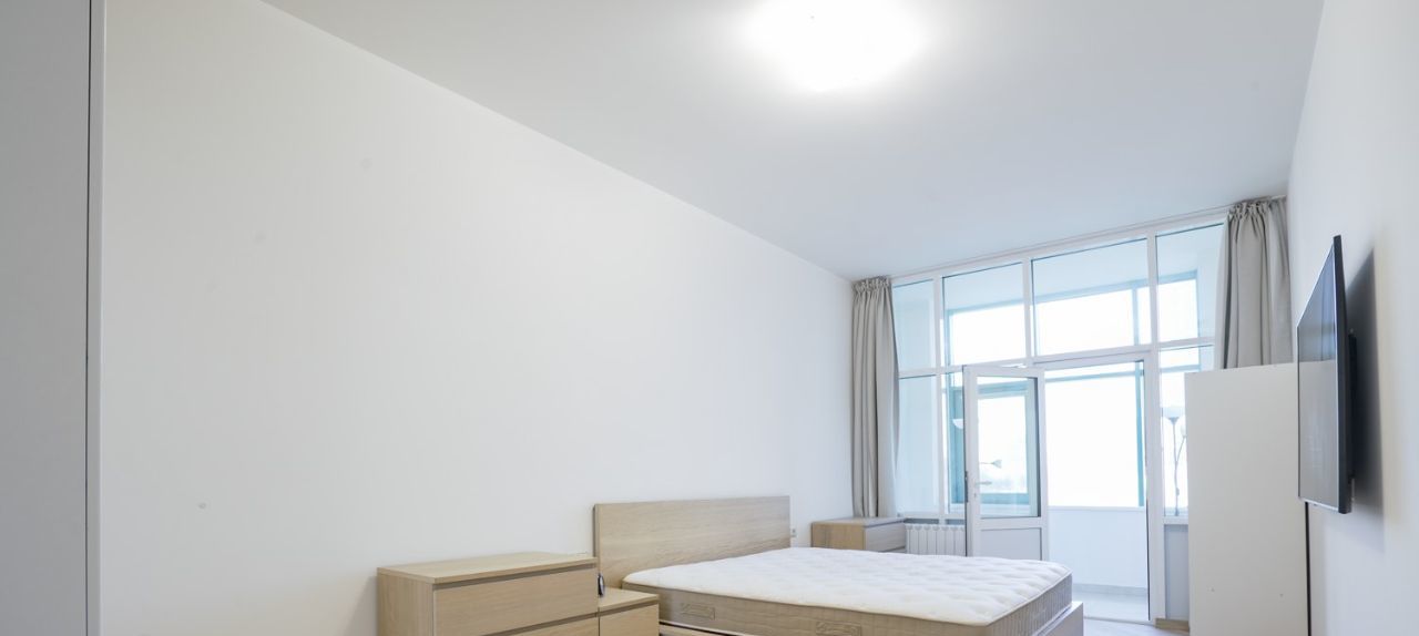 Светлая, просторная квартира, с функциональной и комфортной планировкой: гостиная совмещенная с кухней и столовой, спальня 25 кв.м., большой санузел с