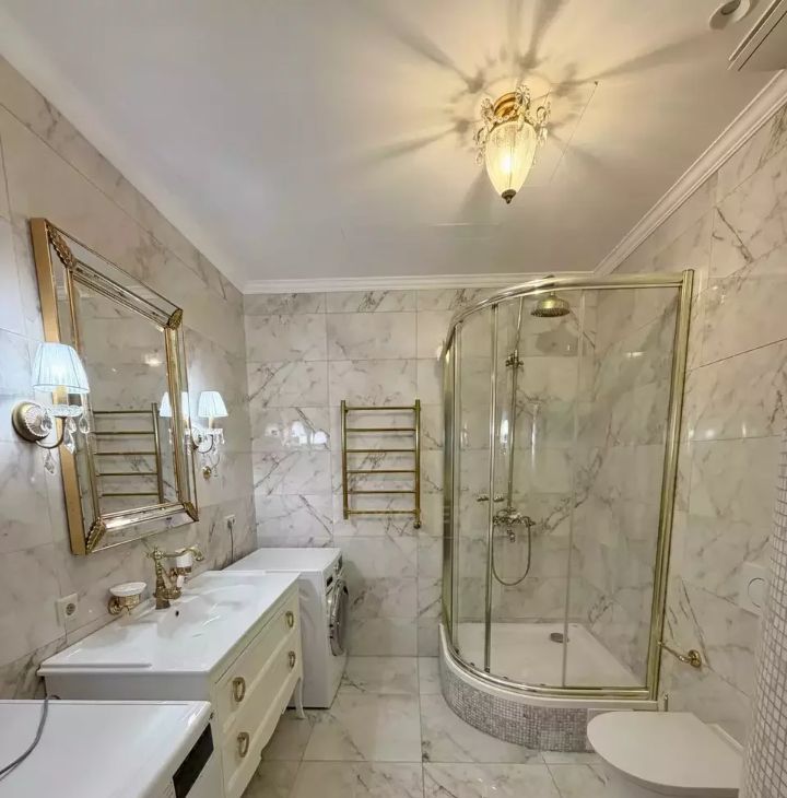 Квартира выполнена в классическом стиле, в ремонте использованы дорогостоящие материалы, европейская техника и мебель. По всей площади квартиры тёплый пол.