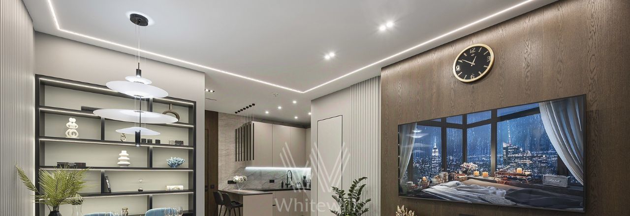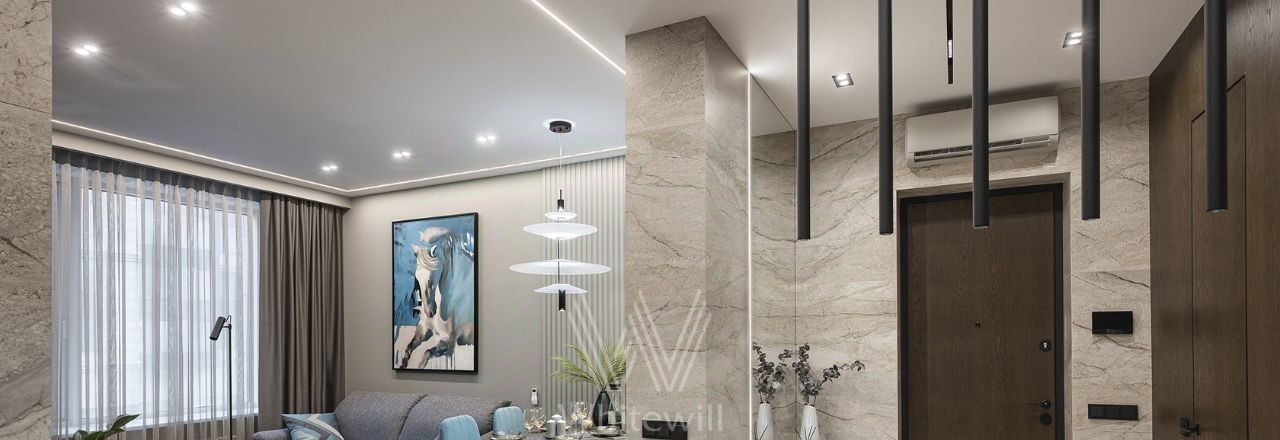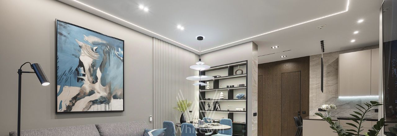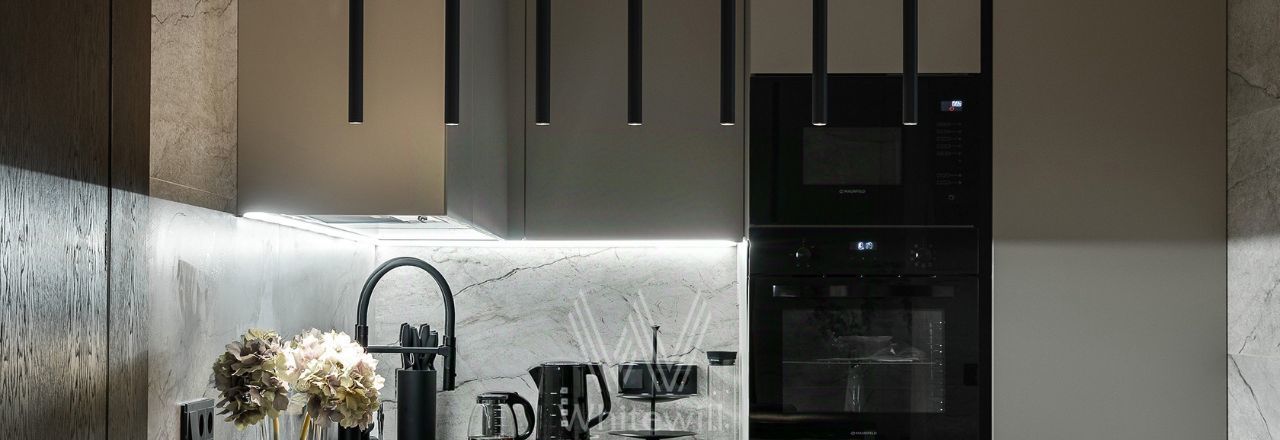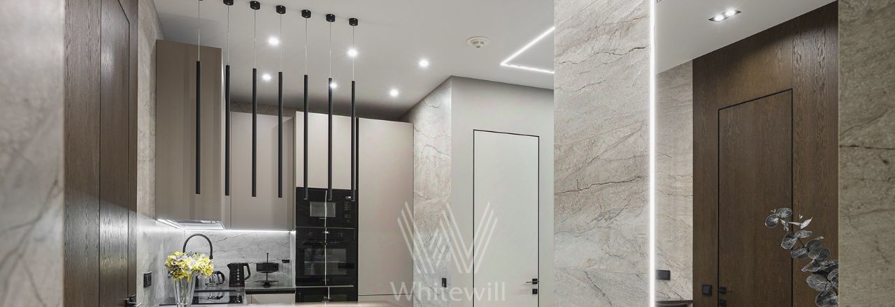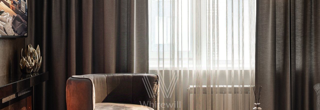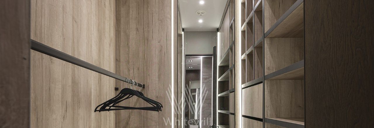 Квартира полностью укомплектована современной мебелью и техникой, установлена система кондиционирования. Установлена шумоизоляция, защита от протечек, шторы на электроприводе. есть винный шкаф.