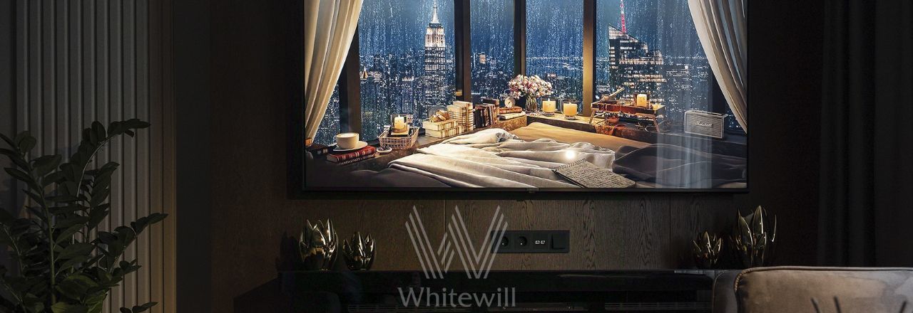 Главное о доме. Две башни в стиле ар-деко с фасадами из мрамора и керамогранита возвышаются над охраняемой территорией. Дизайн лобби Валерия Чугунова с муранским стеклом и золотыми акцентами задаёт тон всему проекту. Вы выбираете квартиру с камином, террасой или "вторым светом", а с верхних этажей открывается панорама на пруд, лес и Поклонную гору. Дети учатся в частной школе "Снегири" внутри комплекса, вы заходите в винный магазин или барбершоп, не покидая территорию, а вечером вы гуляете по собственному ландшафтному двору.