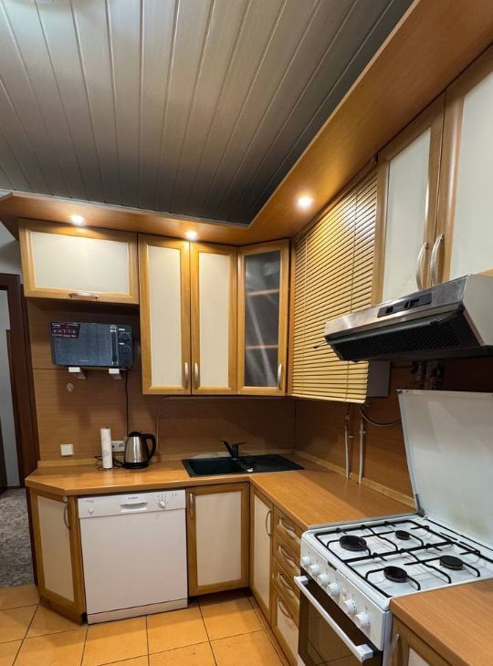 В квартире сделан современный евроремонт. Комнаты обставлены необходимой мебелью, на кухне также есть всё для комфортного приготовления пищи. Здесь установлена вся необходимая техника: кондиционер, холодильник, посудомоечная и стиральная машины, а также телевизор. Ванная комната оборудована душевой кабиной. Окна выходят на улицу, поэтому в квартире всегда светло и уютно.