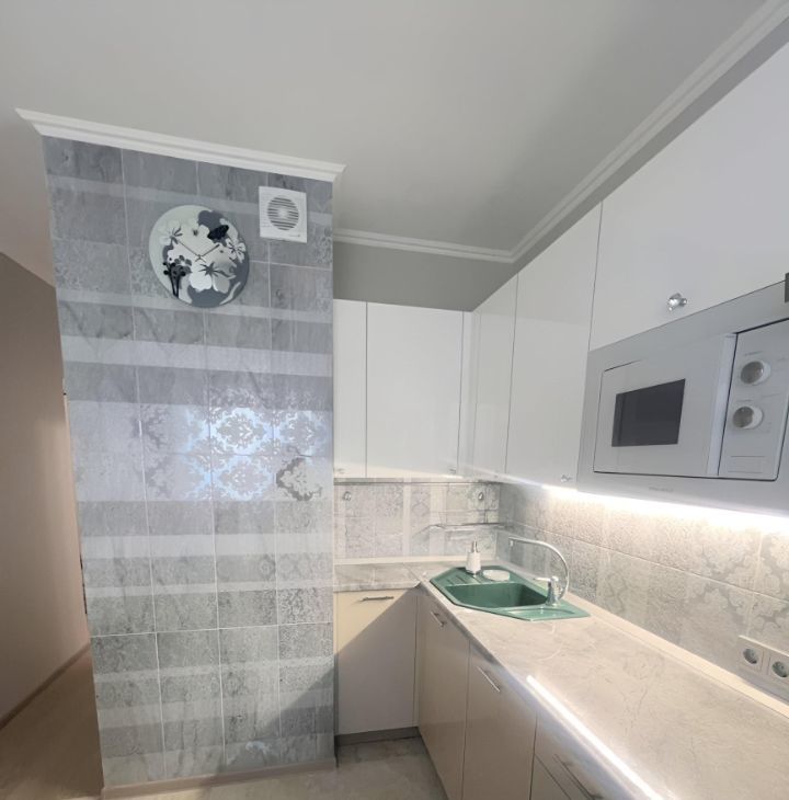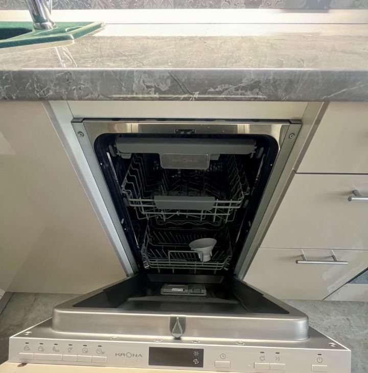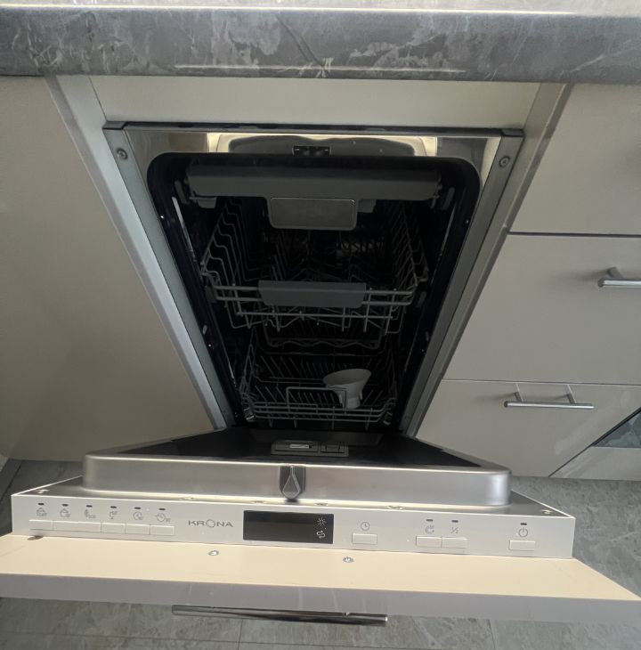 Встроенная техника: холодильник, посудомоечная машина, стиральная машина и телевизор — всё для вашего комфорта.