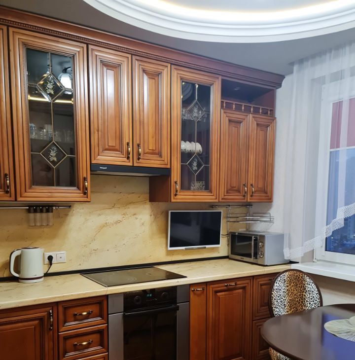 В квартире сделан евроремонт. Просторная и светлая спальня, оборудованная кондиционером и телевизором, станет отличным местом для отдыха. В кухне есть вся необходимая мебель и техника, включая холодильник, посудомоечную машину, телевизор, стиральную машину, микроволновую печь, электрическую плиту, духовой шкаф, поэтому можно готовить с удовольствием. Из окон открывается вид на сквер перед Митинской улицей. Имеется один балкон для наслаждения свежим воздухом.