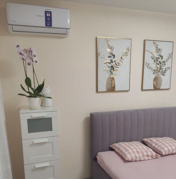 Квартира имеет современный и стильный интерьер. Сделан качественный евро ремонт. Комнаты полностью меблированы и готовы для комфортного проживания. В квартире есть вся необходимая бытовая техника, холодильник и стиральная машина. Вся мебель и техника новые.