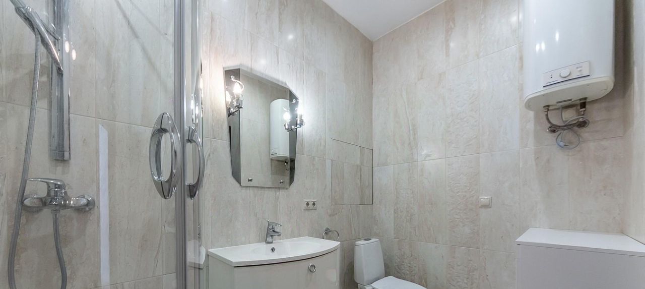 Санузел совмещённый оборудован качественной европейской сантехникой и душевой кабиной, бойлер.
