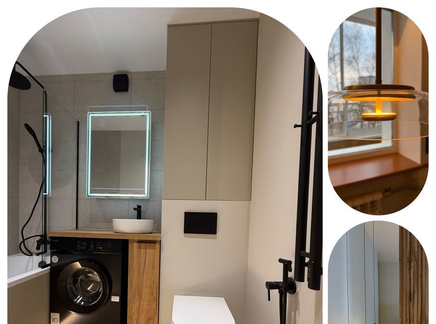 сделан дизайнерский ремонт( заменены все коммуникации, стояки, батареи, электрика, сантехника трубы).