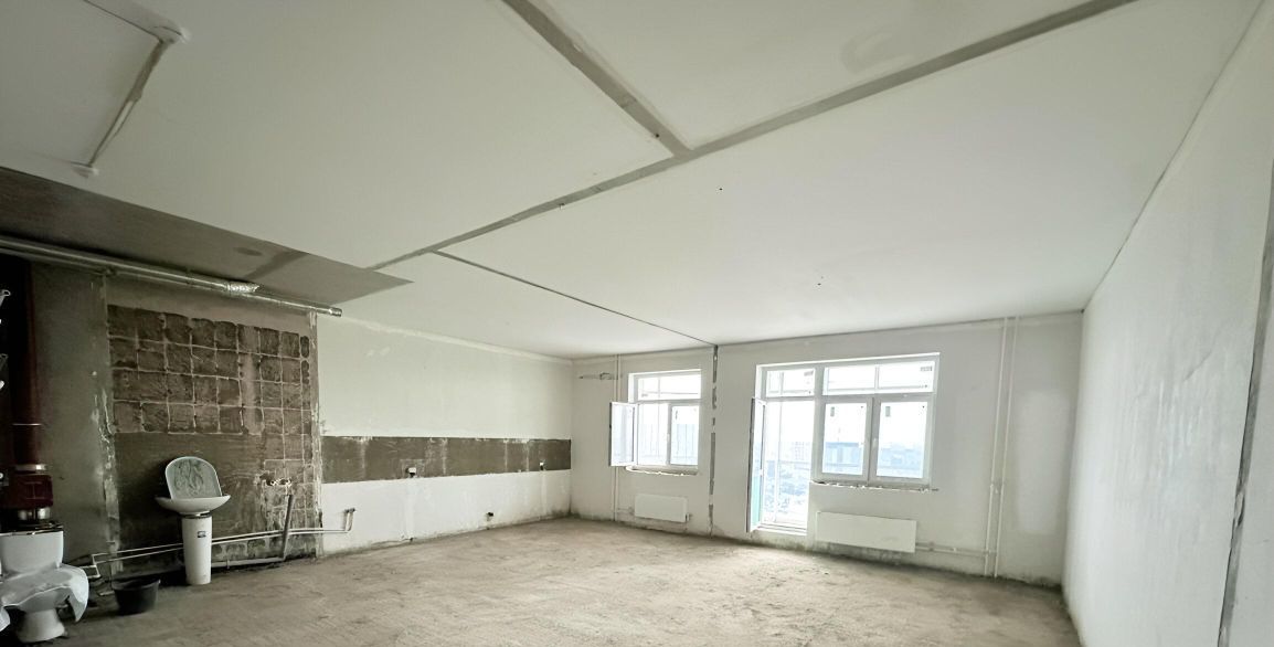 Квартира без ремонта, что дает вам возможность воплотить собственные дизайнерские идеи. Выполнены демонтажные работы (перегородки, стяжка и т д). Площадь квартиры по обмерам 59 м2 и лоджия с панорамным остеклением 13,2 м2.