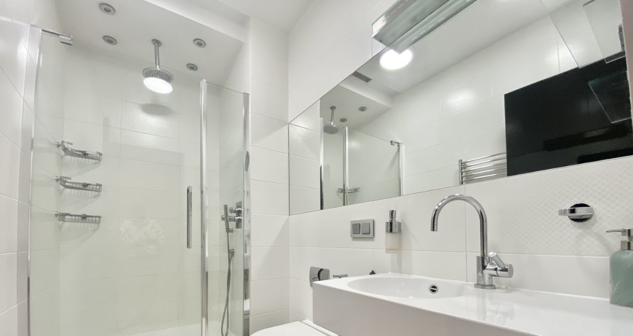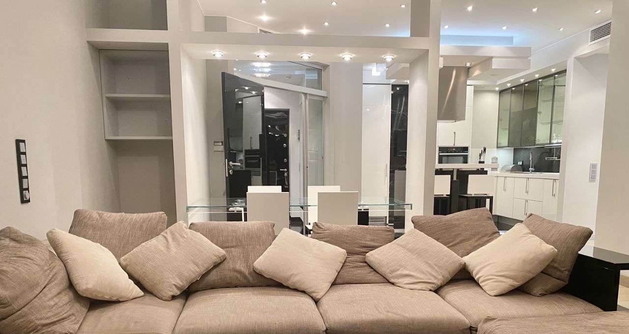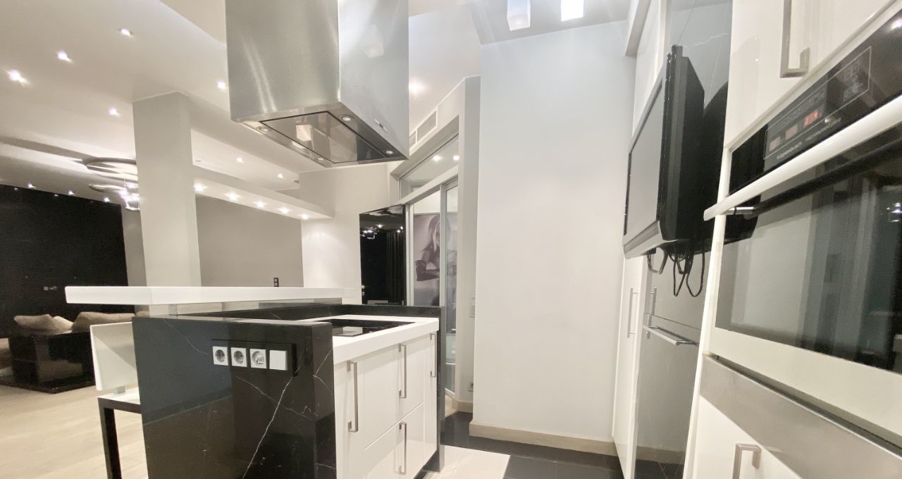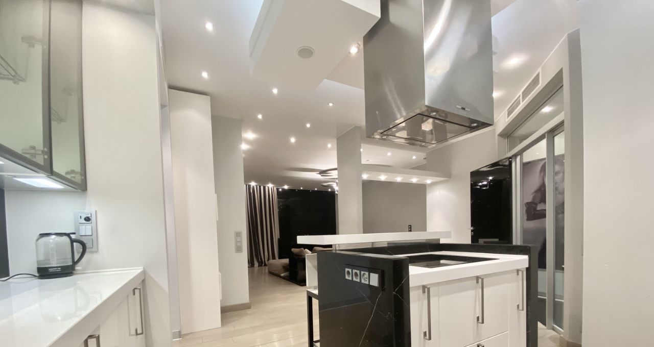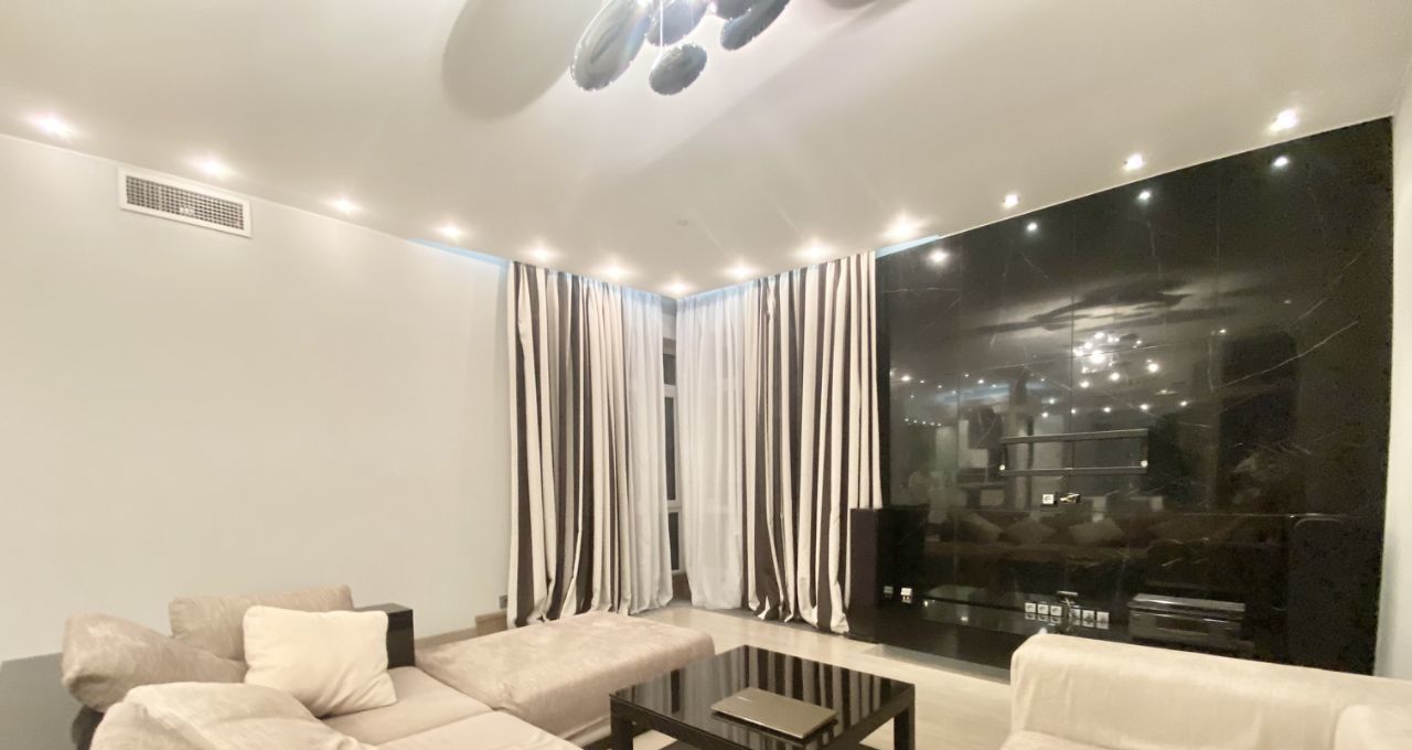 Квартира с дизайнерским ремонтом в стиле-модерн. Функциональная планировка квартиры: гостиная объедененная с кухонной зоной и уютная спальня со своим санузлом и большой гардеробной комнатой. Квартира полностью укомплектована мебелью и бытовой техникой. ЗАХОДИ И ЖИВИ!!! Есть все необходимое для комфортного проживания!!! ДВА полных санузла оборудованные европейской сантехникой с отделкой мрамором. Постирочная со стиральной и сушильной машинами, бойлер. Полы с подогревом. Установлены кондиционеры, интернет. В квартире царит приятная атмосфера. Огороженная, охраняемая территория с пропускной системой. Подземный паркинг.