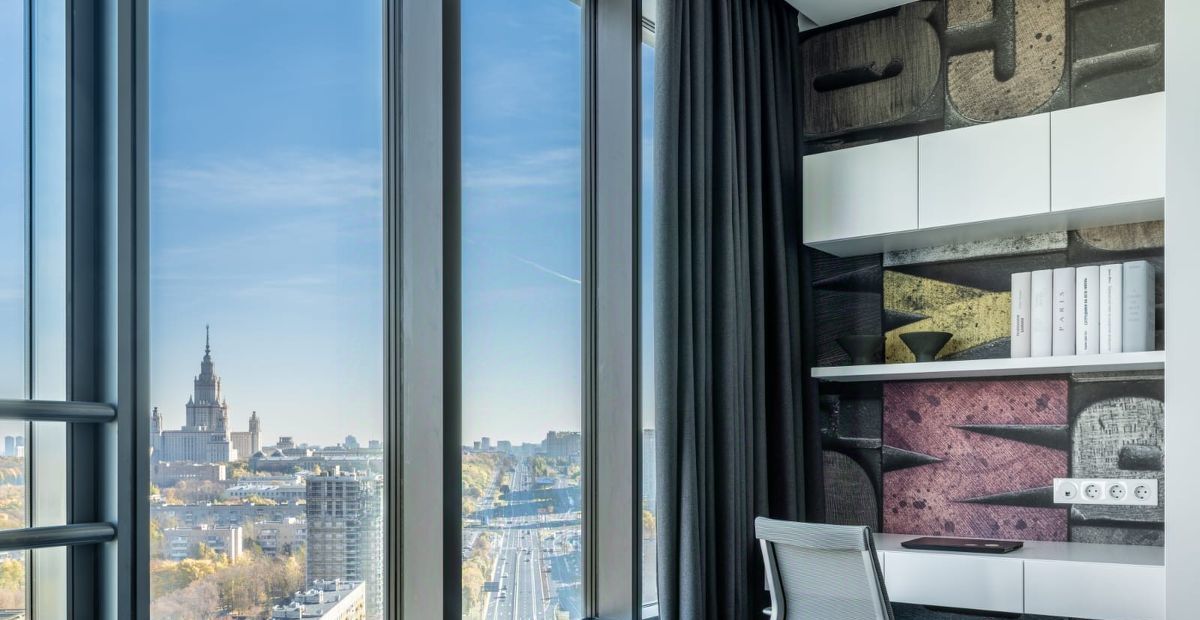 Сдается квартира на 22 этаже с панорамным видом на город. В прямой видимости находятся все сталинские высотки, прекрасный вид на Сити, памятники Петру Первому и Гагарину, храм Христа Спасителя, здание МГУ. Время можно сверять по курантам Спасской башни Кремля. Прекрасные рассветы и климатические процессы над городом. Современный дизайнерский ремонт, есть мастер спальня со своим санузлом с ванной и гардеробной, есть комната для детей с диваном и встроенной кроватью, со своим гардеробом и рабочими местами. Большая гостиная, совмещенная с современной кухней с островом, столешница которого сделана из натурального мрамора. Гостевой санузел с душевой. Отдельная постирочная с колонной стиральной и сушильной машин. Есть также гардеробная рядом с прихожей.