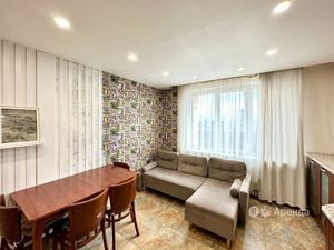 В двух комнатах панорамные окна с красивейшим видом на парк и закаты. Потолки более 3м. Пожарная сигнализация с датчиками дыма, система кондиционирования. Просторная прихожая. Отдельная гардеробная комната. Кухня совмещена с гостиной (24м²): современная кухня с резным порталом и выездными колонами. Встроенная техника: стиральная и посудомоечная машина, духовой шкаф, холодильник, вытяжка. Обеденный стол с мягкой зоной и раскладным диваном на двоих. Большой ЖК-Телевизор. Изолированная спальня (17 м²): двуспальная кровать с двумя тумбочками, комодом, туалетным столиком с зеркалом и креслом. Шторы блэкаут. Совмещённый санузел с душевой кабиной. Теплый пол везде где плитка: коридор, санузел, кухня. Централизованное кондиционирование с настенного встроенного пульта