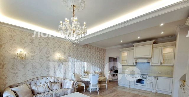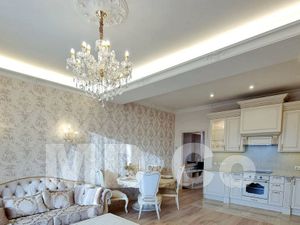 В двух комнатах панорамные окна с красивейшим видом на парк и закаты. Потолки более 3м. Пожарная сигнализация с датчиками дыма, система кондиционирования. Просторная прихожая. Отдельная гардеробная комната. Кухня совмещена с гостиной (24м²): современная кухня с резным порталом и выездными колонами. Встроенная техника: стиральная и посудомоечная машина, духовой шкаф, холодильник, вытяжка. Обеденный стол с мягкой зоной и раскладным диваном на двоих. Большой ЖК-Телевизор. Изолированная спальня (17 м²): двуспальная кровать с двумя тумбочками, комодом, туалетным столиком с зеркалом и креслом. Шторы блэкаут. Совмещённый санузел с душевой кабиной. Теплый пол везде где плитка: коридор, санузел, кухня. Централизованное кондиционирование с настенного встроенного пульта