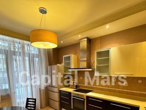 В двух комнатах панорамные окна с красивейшим видом на парк и закаты. Потолки более 3м. Пожарная сигнализация с датчиками дыма, система кондиционирования. Просторная прихожая. Отдельная гардеробная комната. Кухня совмещена с гостиной (24м²): современная кухня с резным порталом и выездными колонами. Встроенная техника: стиральная и посудомоечная машина, духовой шкаф, холодильник, вытяжка. Обеденный стол с мягкой зоной и раскладным диваном на двоих. Большой ЖК-Телевизор. Изолированная спальня (17 м²): двуспальная кровать с двумя тумбочками, комодом, туалетным столиком с зеркалом и креслом. Шторы блэкаут. Совмещённый санузел с душевой кабиной. Теплый пол везде где плитка: коридор, санузел, кухня. Централизованное кондиционирование с настенного встроенного пульта