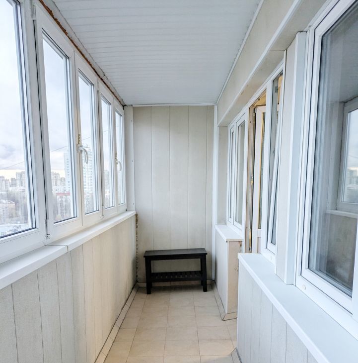 Остеклённый балкон. Санузел раздельный, ванная.