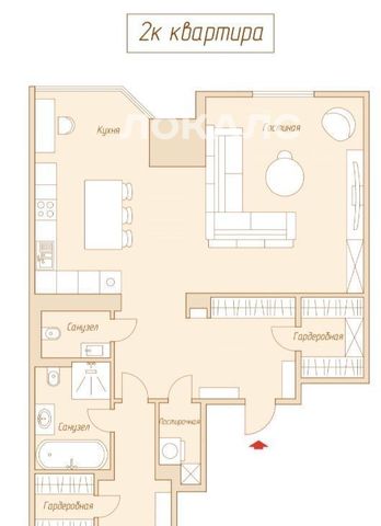 -2 сан.узла: 1- полноценный, совмещенный с ванной (бойлер присутствует), 2-гостевой. стиральная и сушильная машина в наличии.