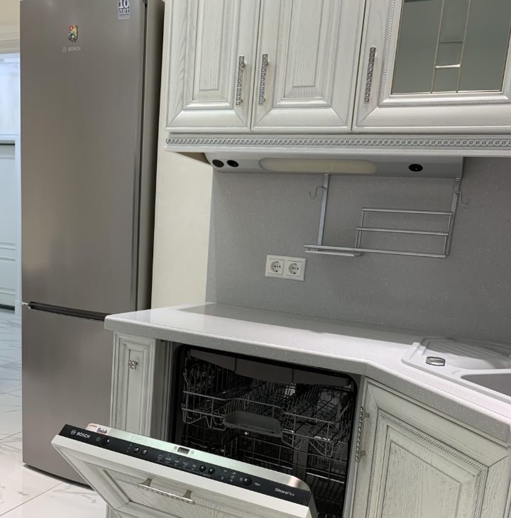 Квартира выполнена с дизайнерским ремонтом, который придаёт ей уникальный характер. Высокие потолки в 3 метра создают ощущение простора. В квартире есть всё необходимое для комфортного проживания: кондиционер, холодильник, посудомоечная машина, телевизор и стиральная машина. Просторная кухня площадью 20 кв. м полностью меблирована и оборудована современной техникой. В комнате также имеется мебель, а в ванной комнате установлена ванна.