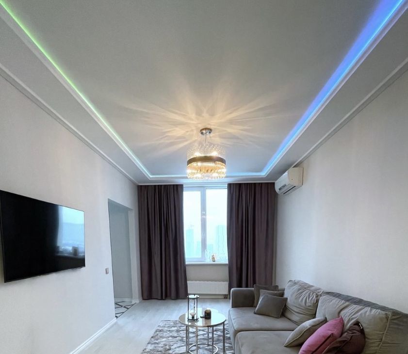 - Полуизолированная гостиная с регулируемым RGB освещением