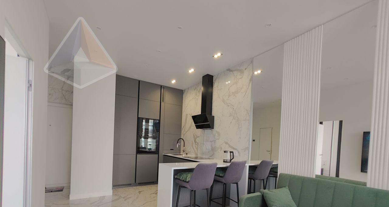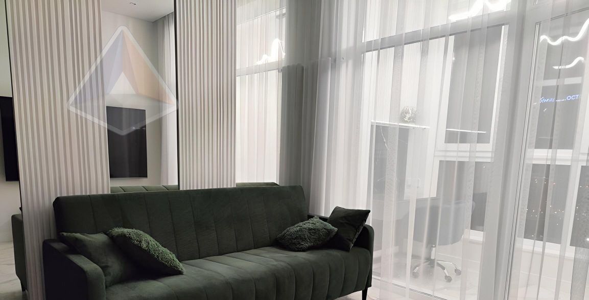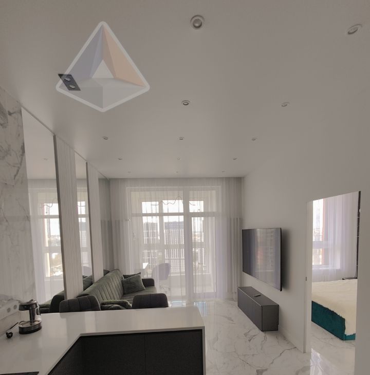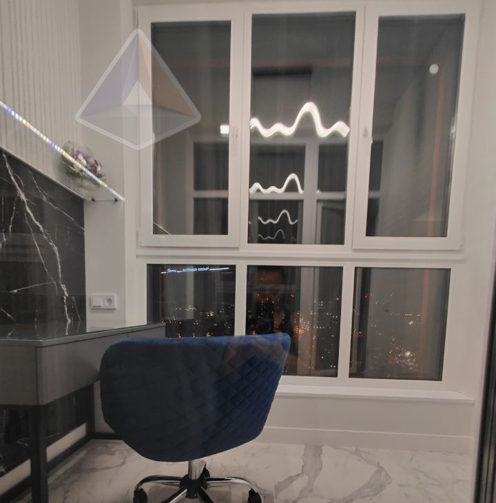 Просторная квартира 40 м² на высоком 25 этаже (потолки 3 м): кухня 15 м², жилая площадь 20 м², совмещённый санузел с душевой, тёплый балкон со смотровым остеклением (оборудован рабочим местом). Дизайнерский ремонт, много места для хранения, полная комплектация: холодильник с морозилкой, варочная поверхность, духовой шкаф, вытяжка, микроволновка, стиральная машина с сушкой, посудомоечная машина, ТВ 75, чайник, утюг, сейф, видеодомофон, посуда — заезжай и живи.