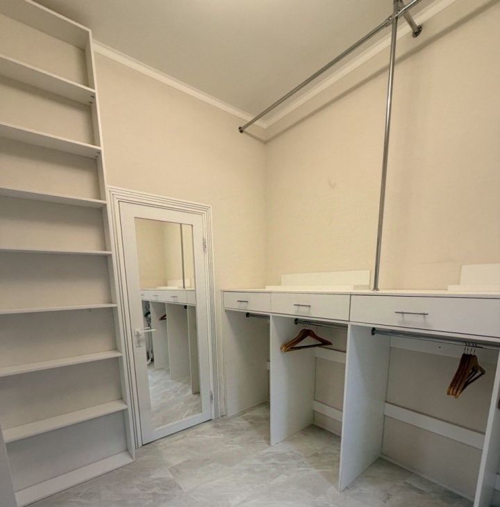 Далее Вы попадаете в МАСТЕР-СПАЛЬНЮ, проходя через ГАРДЕРОБНУЮ. Здесь Вы можете уединиться, отдыхать, наводить красоту. Во втором санузле установлена ванна, стиральная машина.