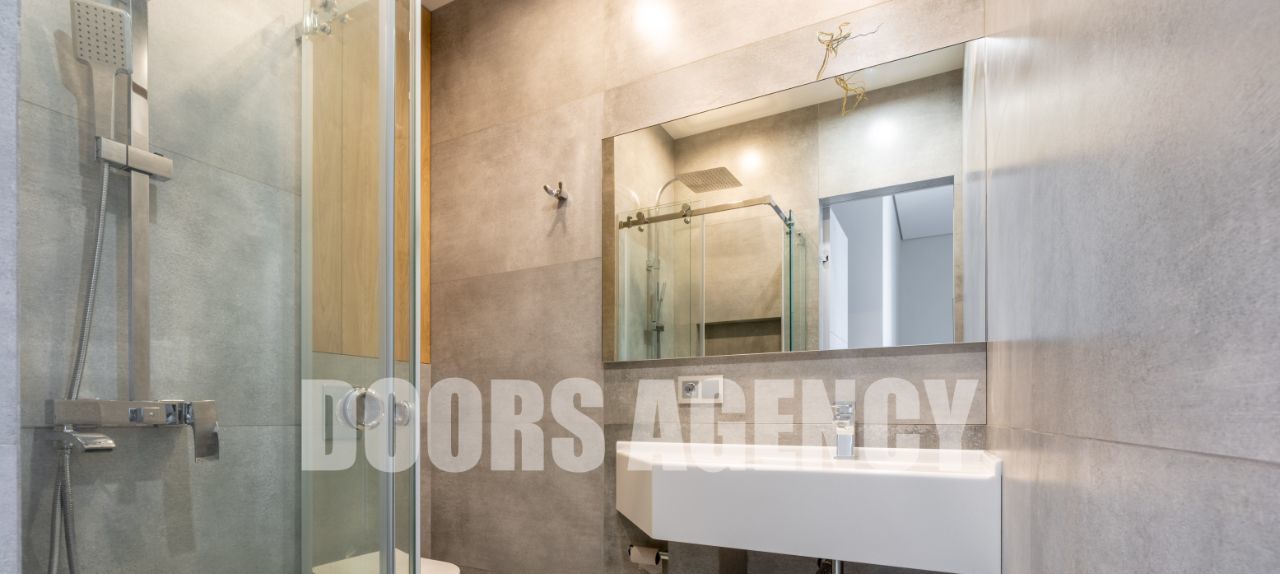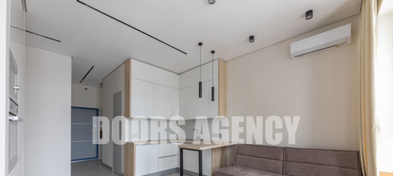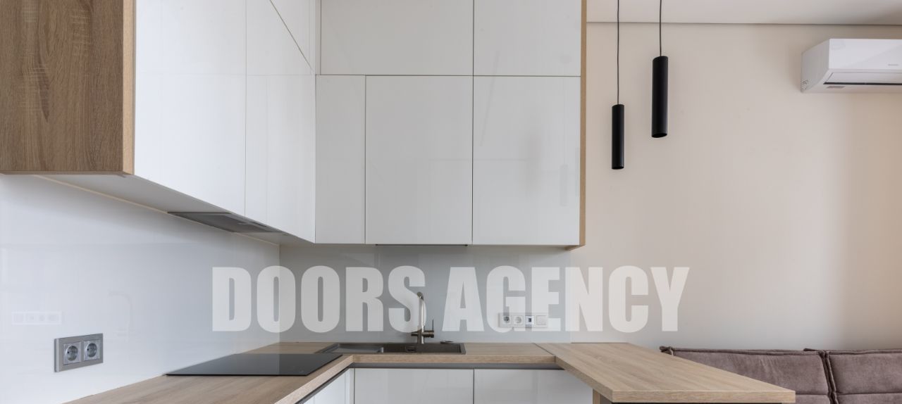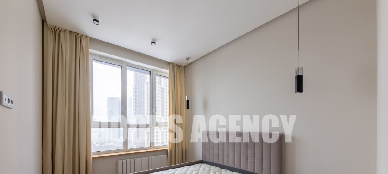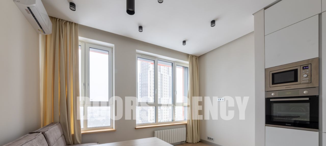 Планировка: кухня-гостиная, изолированная спальня, гардеробная, совмещенный санузел с душем. В квартире имеется вся необходимая техника: посудомоечная машина, стиральная машина, варочная панель, вытяжка, духовой шкаф, свч шкаф (микроволновка), холодильник. Установлен кондиционер и теплый пол в с/у. Высокие потолки (3.1 м). Окна на парк Событие и МГУ.