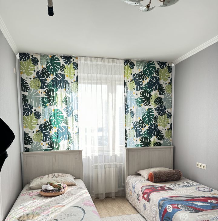 Обустроенная детская комната и раскладной диван с матрасом (полноценным спальным местом) на 2х взрослых в зале/гостиной.