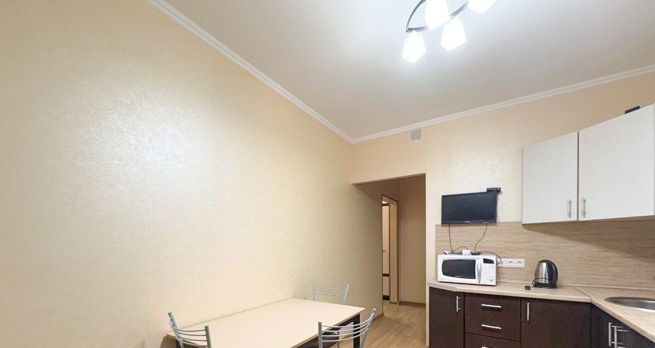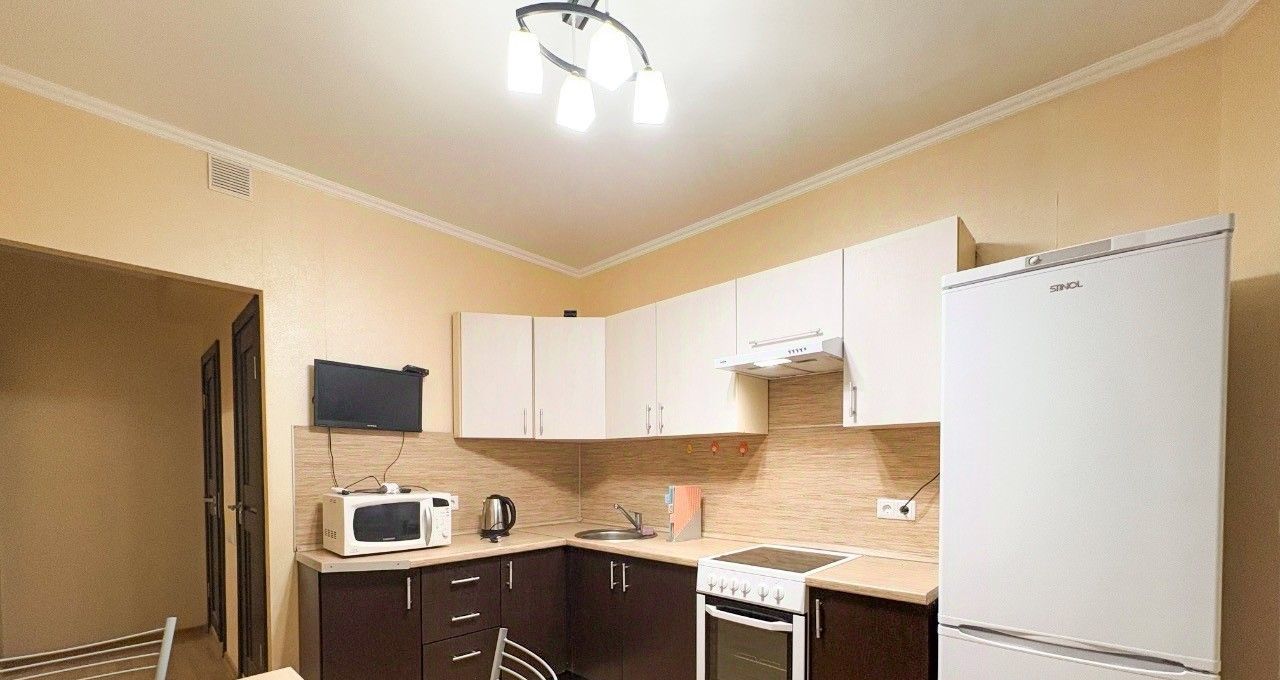 Квартира оснащена кухонным гарнитуром, всей необходимой мебелью и бытовой техникой.