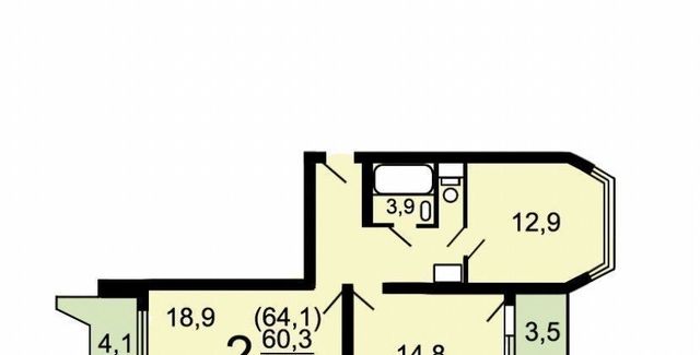2-к кв. Москва, Москва, Московский г. ул. Бианки, 7 (64.0 м²)