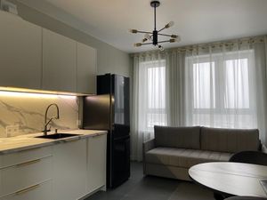 Квартира чистая, светлая, тёплая и уютная, в отличном состоянии, полностью оборудована для проживания: мебель, интернет, микроволновая печь, посудомоечная машина, кондиционер, чайник, телевизор, стиральная машина, холодильник, много места для хранения вещей. Новое абсолютно всё, квартира сдается впервые. Интеллигентный собственник. Санузел совмещенный, балкона нет.