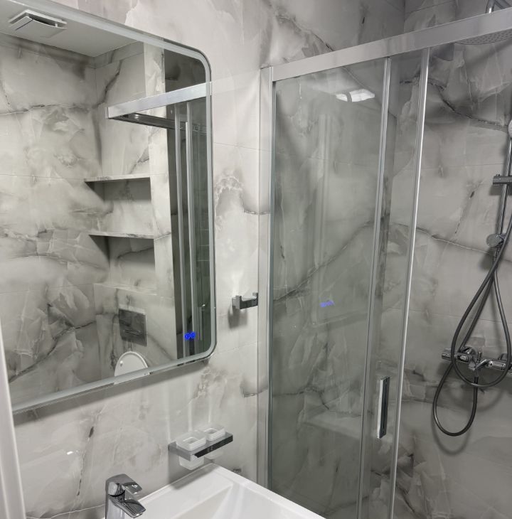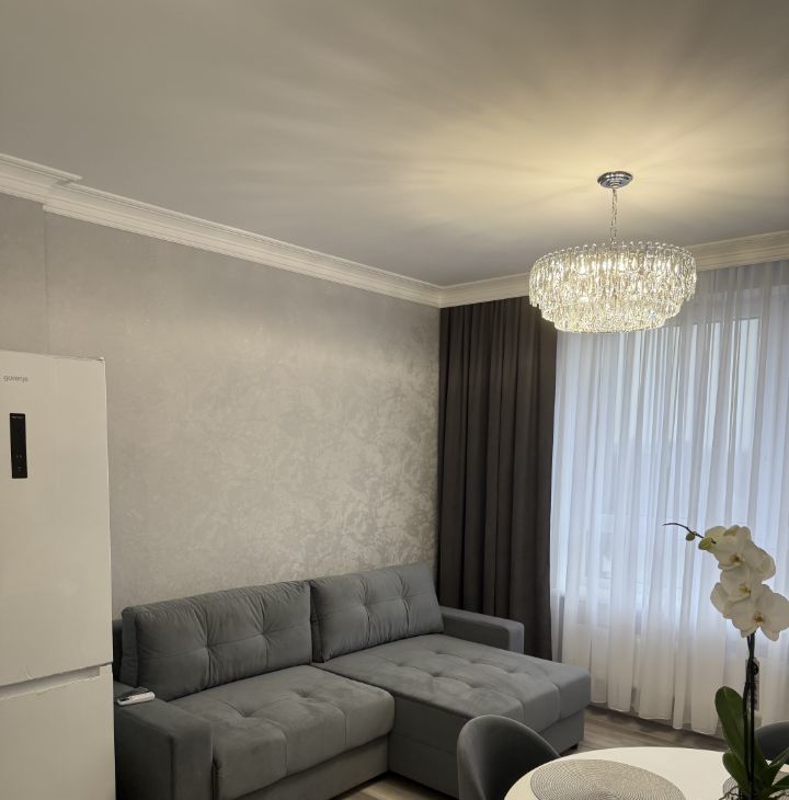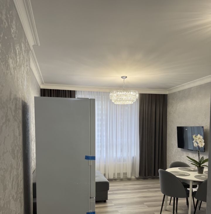 В квартире сделан качественный евроремонт, что позволяет сразу заехать и комфортно проживать. В наличии вся необходимая техника: кондиционер, холодильник, телевизор и стиральная машина. Мебель имеется как на кухне, так и в комнате, поэтому можно не беспокоиться о дополнительных тратах на обстановку. Ванная комната оборудована душевой кабиной.