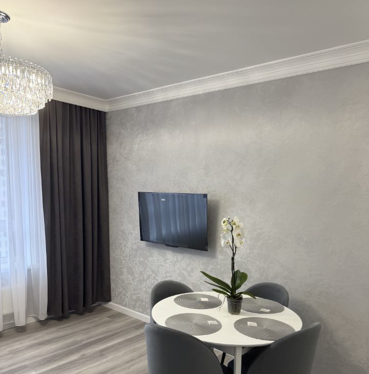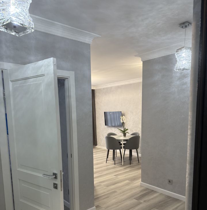 Сдается уютная 2-комнатная квартира с евроремонтом в современном жилом комплексе, построенном в 2022 году. Общая площадь квартиры составляет 55 кв. м, жилая площадь — 40 кв. м, кухня — 8 кв. м. Квартира расположена на 14 этаже 25-этажного монолитного дома, с высотой потолков 2.9 метра. Окна выходят как на улицу, так и во двор, что обеспечивает хорошее естественное освещение.