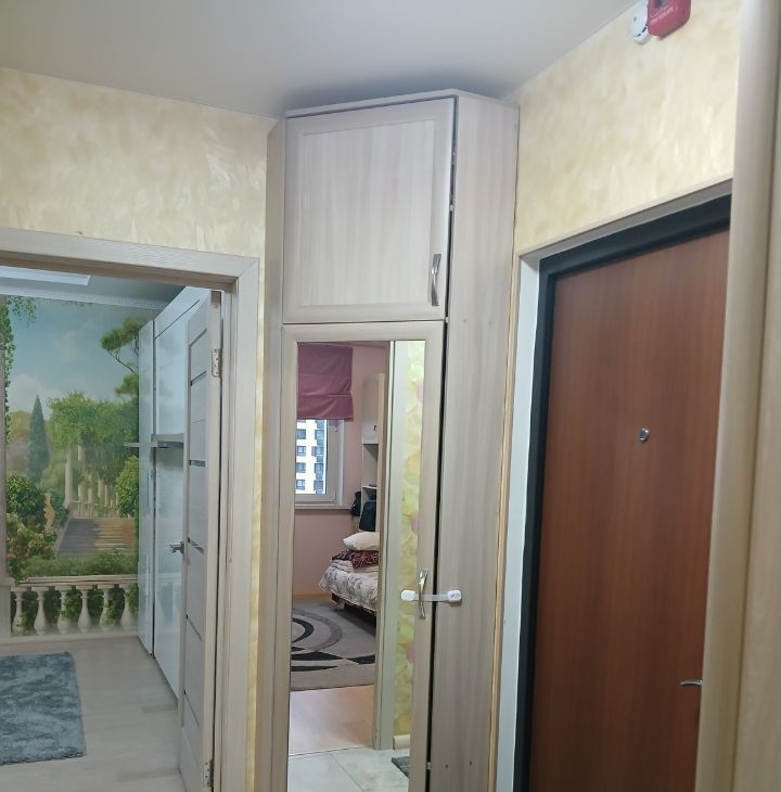 Квартира расположена на 9 этаже, красивый вид из окна. Чистый подъезд, приветливые соседи.