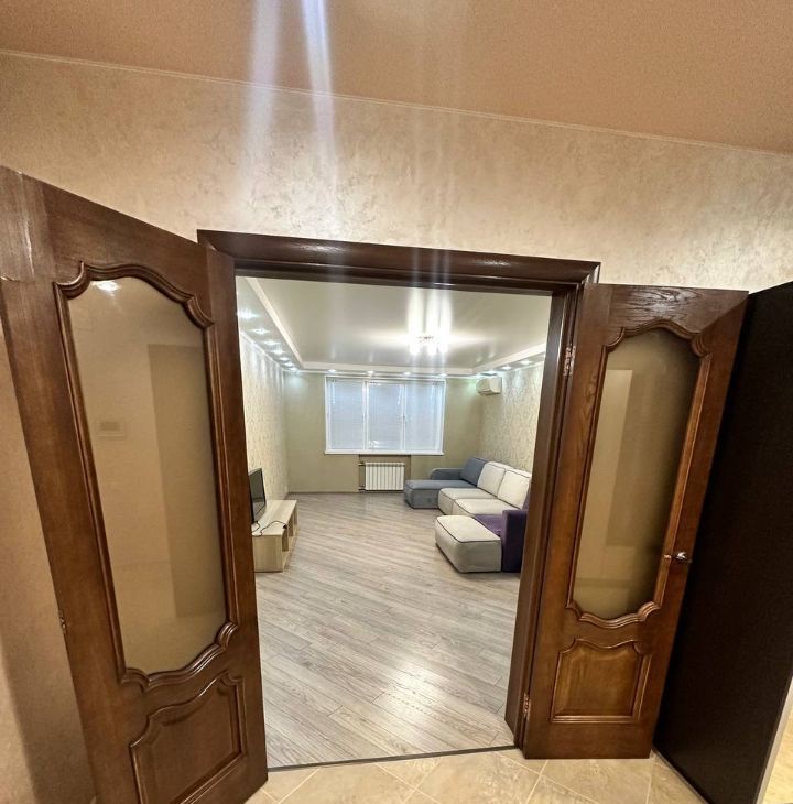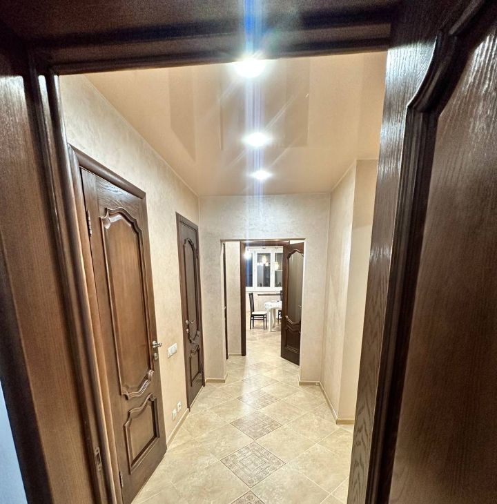 Квартира полностью готова для комфортного проживания. Здесь есть современная мебель на кухне и в комнатах. отдельная гардеробная и кладовка. А также вся необходимая техника: кондиционер, холодильник, посудомоечная машина, телевизор и стиральная машина. Ванная комната оборудована ванной, а отдельный санузел добавляет удобства.