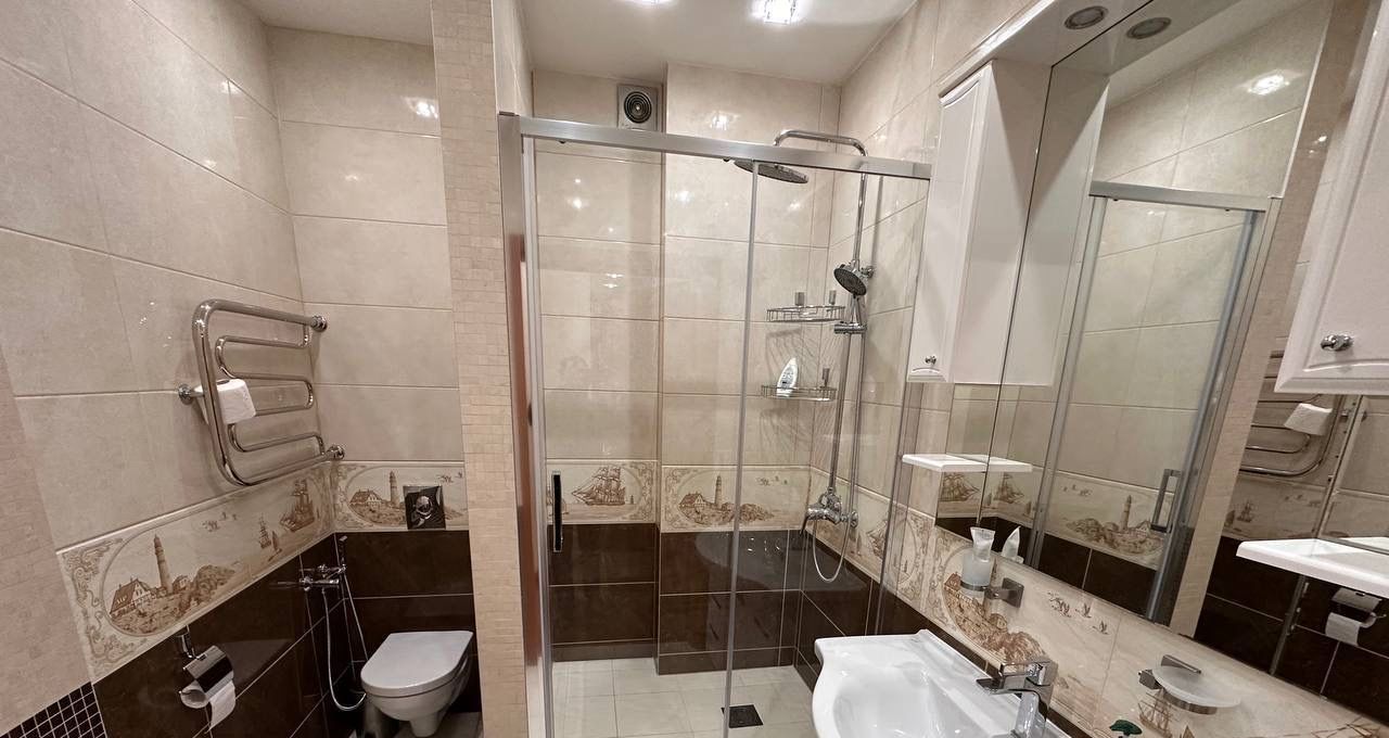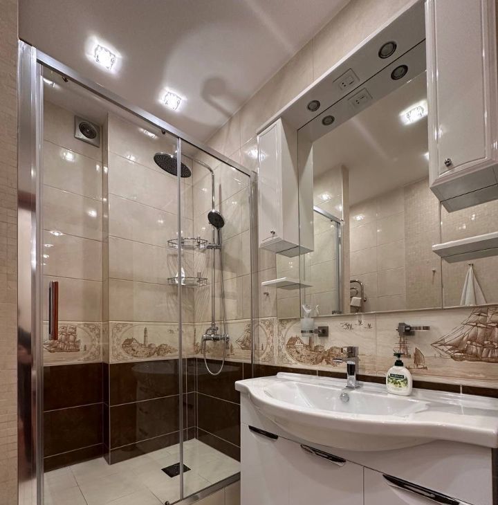 Ванная комната новая душевая кабина, подогрев пола.