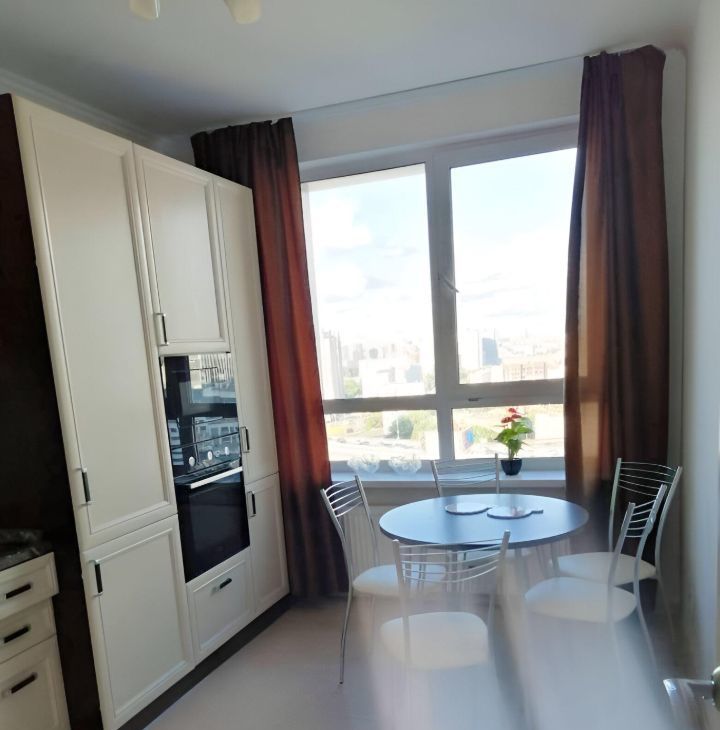 Квартира с панорамным видом на Сити. Квартира в хорошем состоянии, встроенная кухня, спальные места в каждой комнате, комнаты изолированны.