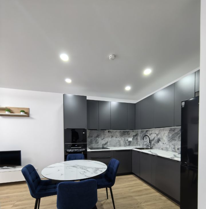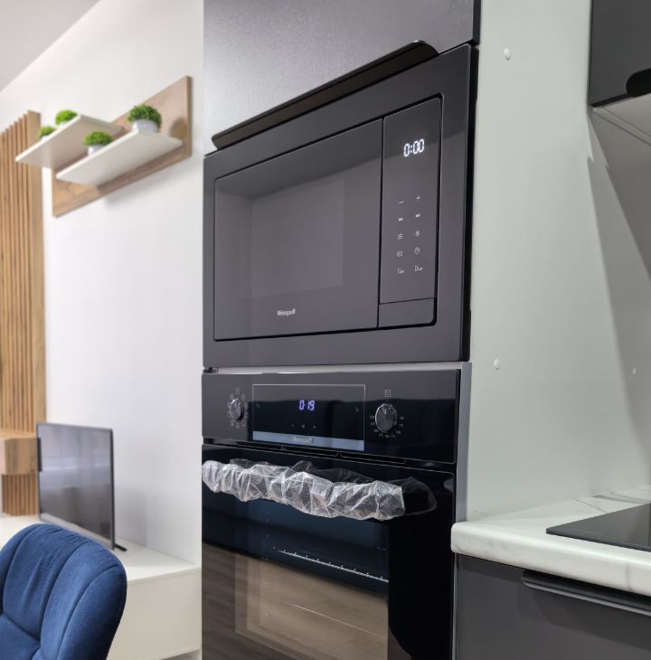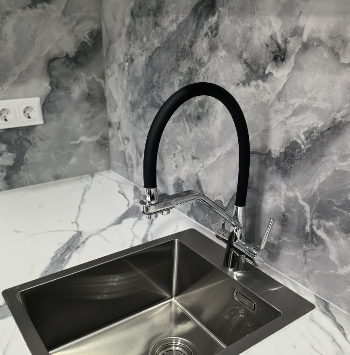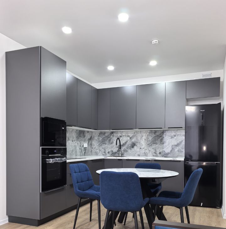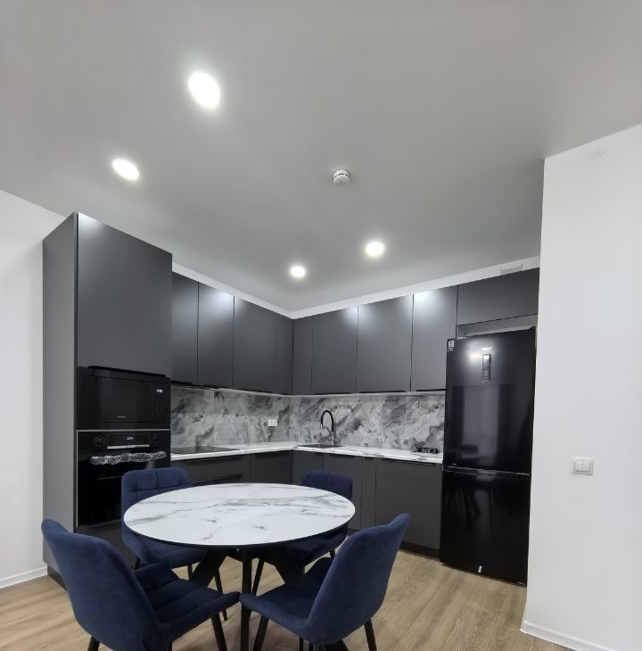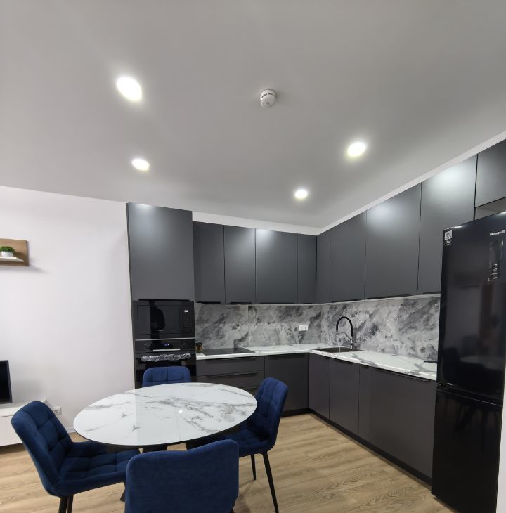 встроенная кухня с духовым шкафом, СВЧ, вместительной посудомоечной машиной, бесшумной вытяжкой, встроенными розетками с USB и системой фильтрации воды.