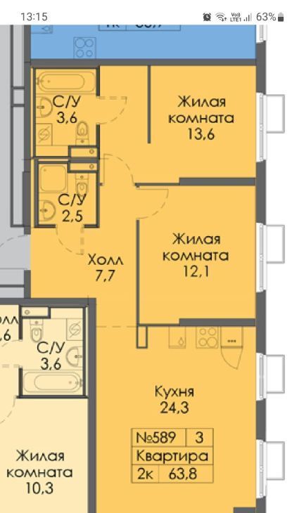 2-к кв. Москва Муравская ул., 38Бк3 (63.0 м²)