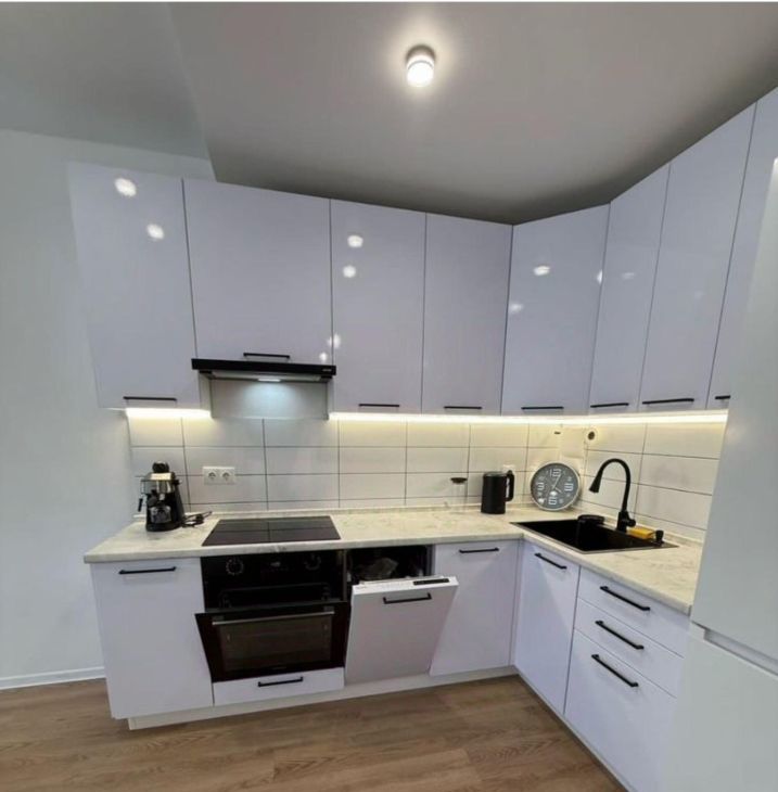 -на кухне установлена мебель,