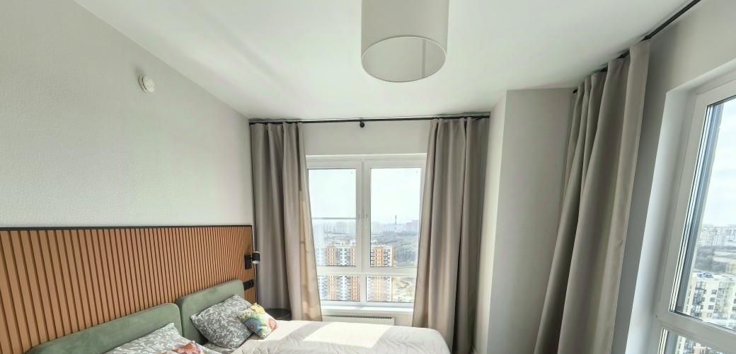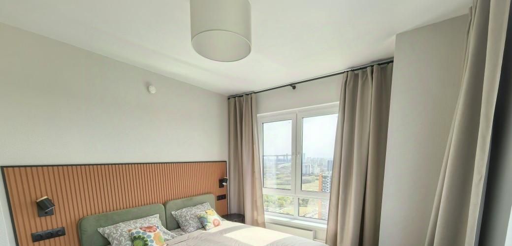 Сдается евротрешка - большая кухня-гостиная с двумя отдельными комнатами (59 кв.м) на последнем 32м этаже — над вами ни топота, ни шума. Панорамные окна с отличными видами. В квартире современный качественный ремонт (делали для себя), раньше никто не жил, новая мебель и кухня под заказ, матрас, постельное белье, посуда. На этаже тихо и спокойно, чистый подъезд, уютный двор, доброжелательные соседи.