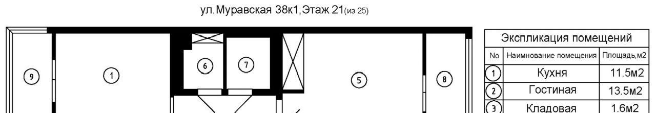 2-к кв. Москва Муравская ул., 38к1 (62.0 м²)