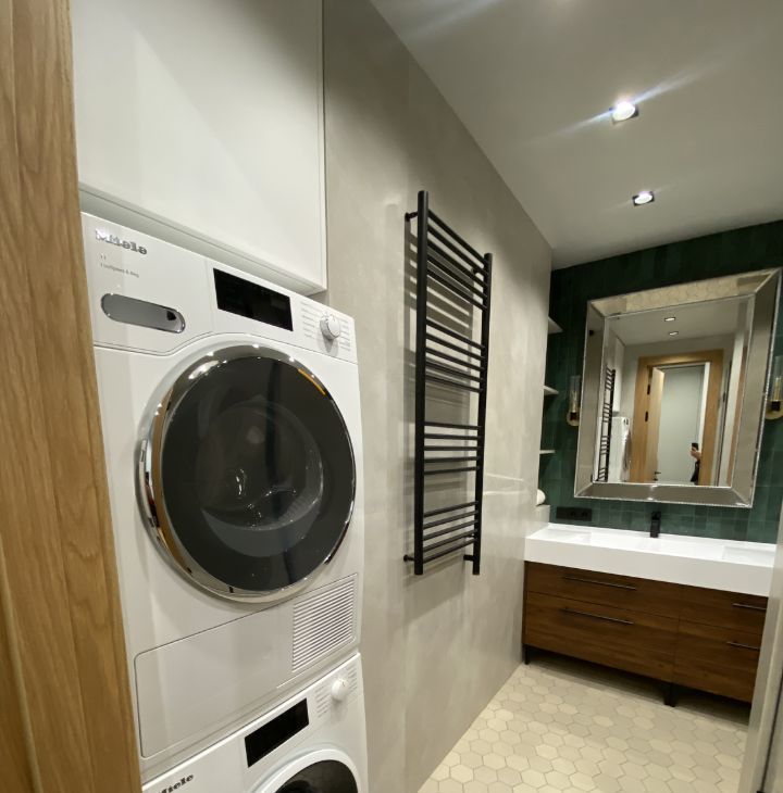 сушильная машина Miele, кофемашина Miele, СВЧ Miele, телевизор 65 LG, система водоочистки, центральное кондиционирование, сейфовая входная дверь Jaguar.