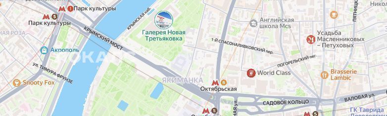 ОКРУЖЕНИЕ: Нескучный сад (Парк Горького) 800 метров, Московский Кремль 3 км, Третьяковская галерея 2 км, Фитнес-клуб с бассейном 150 метров, Бассейн Чайка 2,5 км, Супермаркет Азбука вкуса 25 метров, Кафе и рестораны в пешей доступности, метро Октябрьская 800 метров.