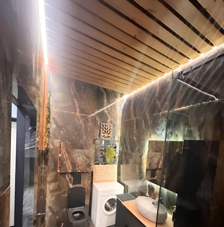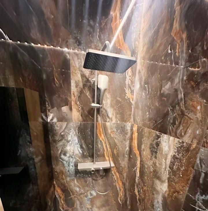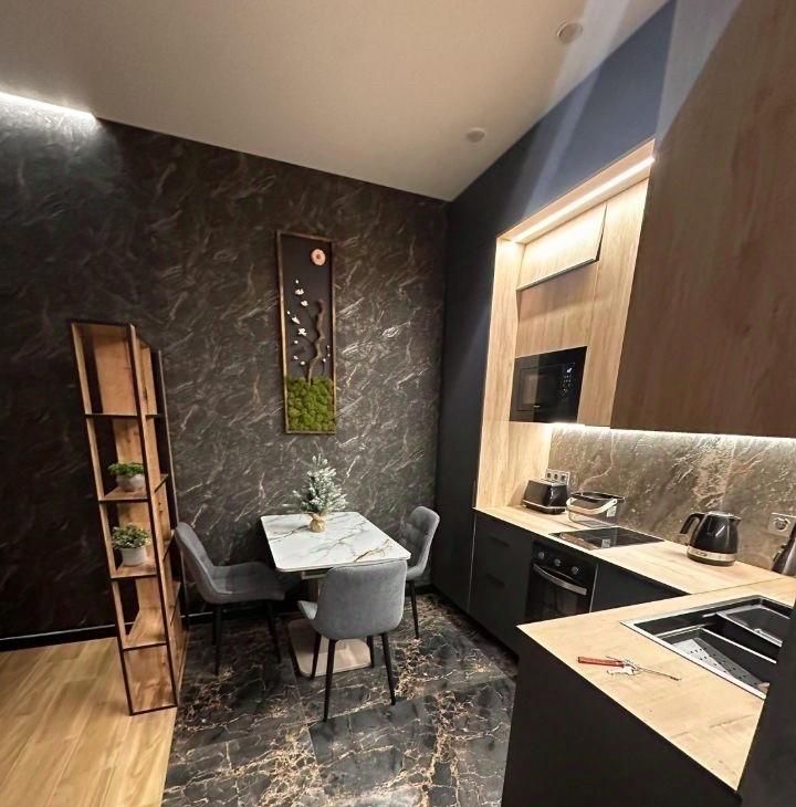 В квартире есть всё необходимое для комфортного проживания: современная мебель на кухне и в комнате, кондиционер, холодильник, посудомоечная машина, телевизор и стиральная машина. Санузел совмещённый, оснащён душевой кабиной. Всё выполнено с использованием качественных материалов и с акцентом на стиль и удобство.