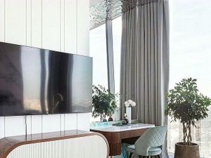 Панорамное остекление открывает захватывающие виды на столицу, наполняя пространство естественным светом и энергией.