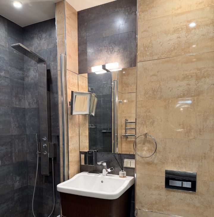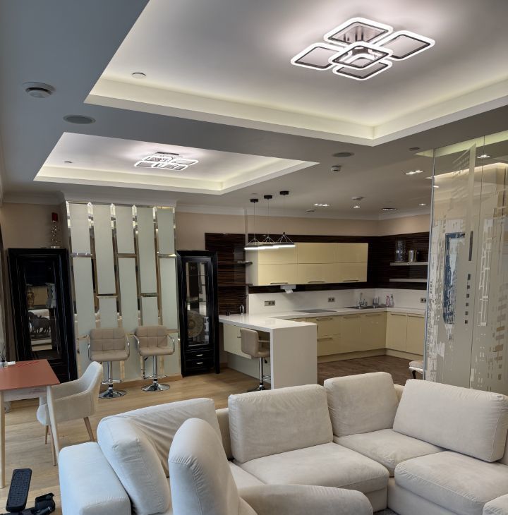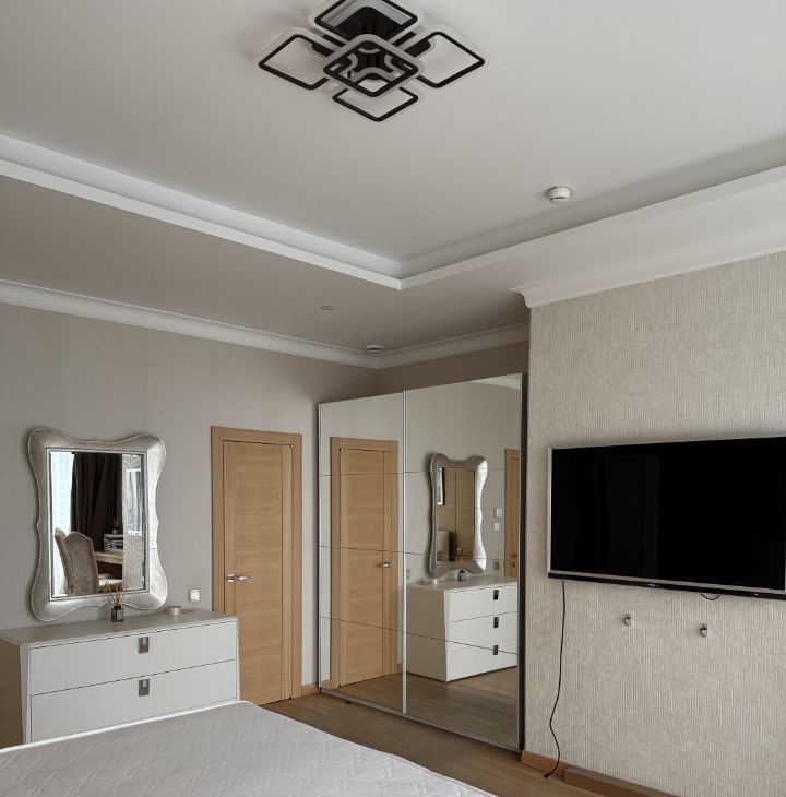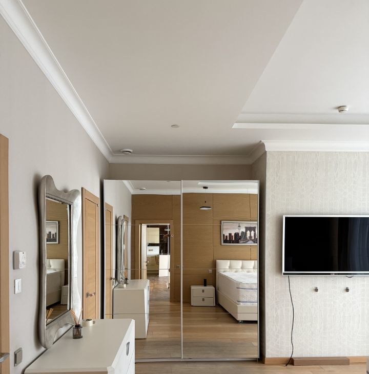 Две изолированные комнаты, два санузла, гардеробная комната. Апартаменты полностью меблированы и полностью оснащены техникой.