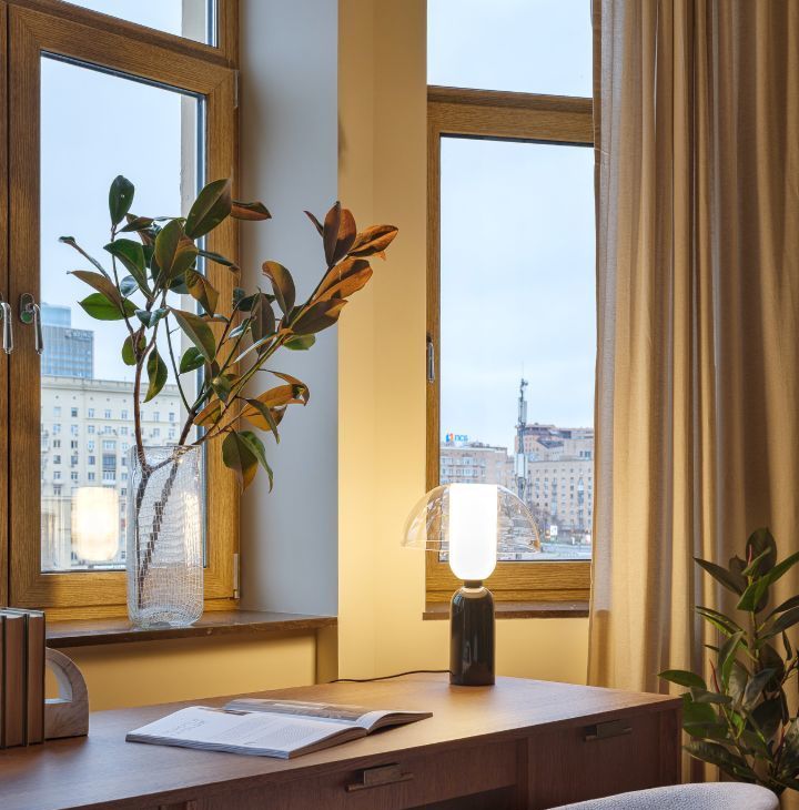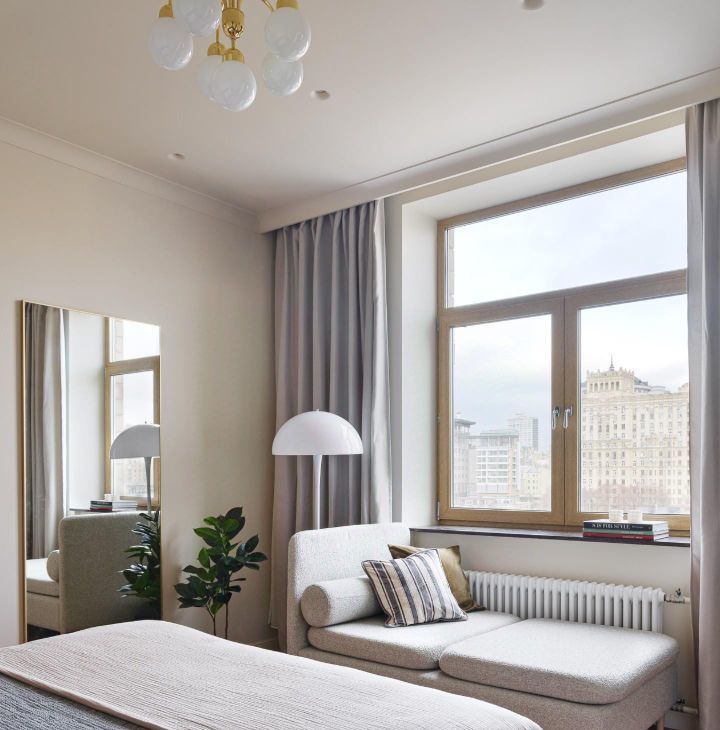 Утро начинается с мягкого солнечного света, аромата свежего кофе и музыки винила. Пять больших окон с видом на воду и город - вы в центре Москвы, но в тишине и комфорте.
