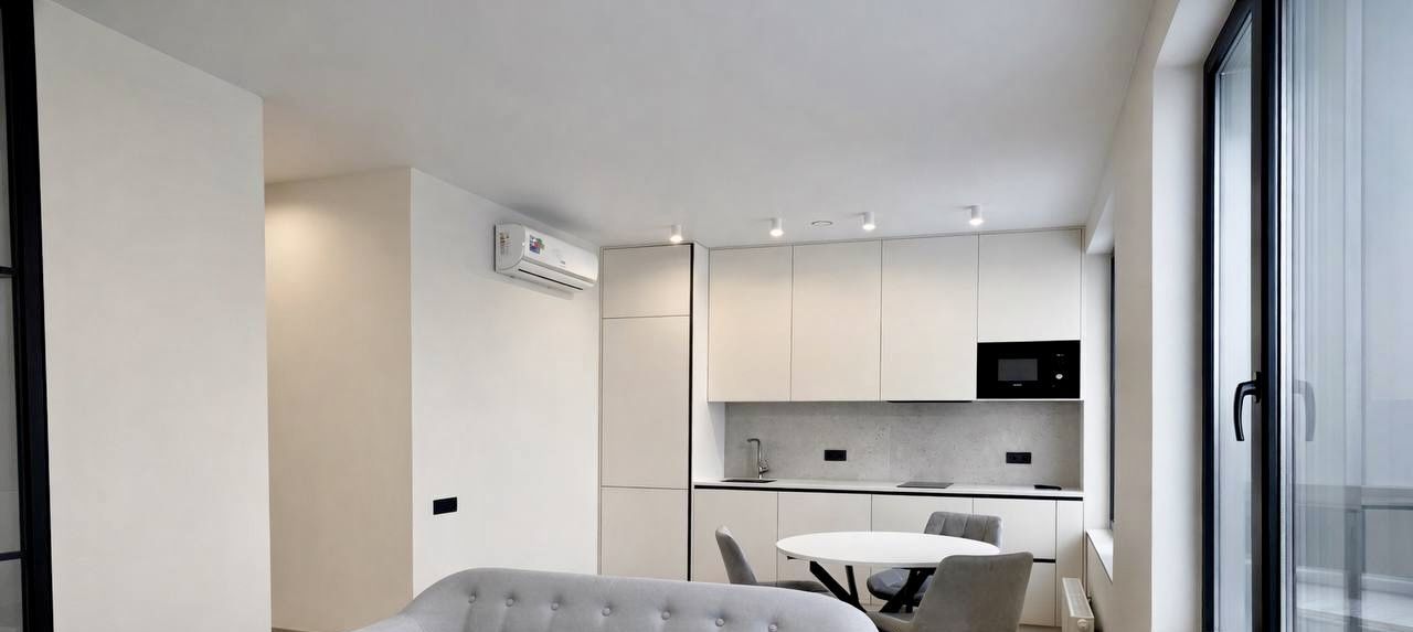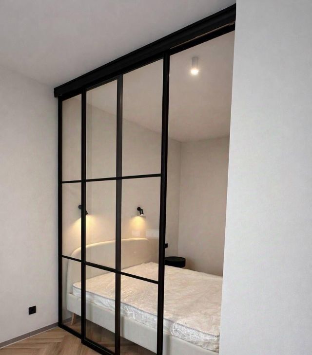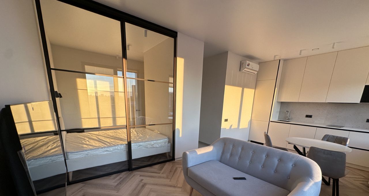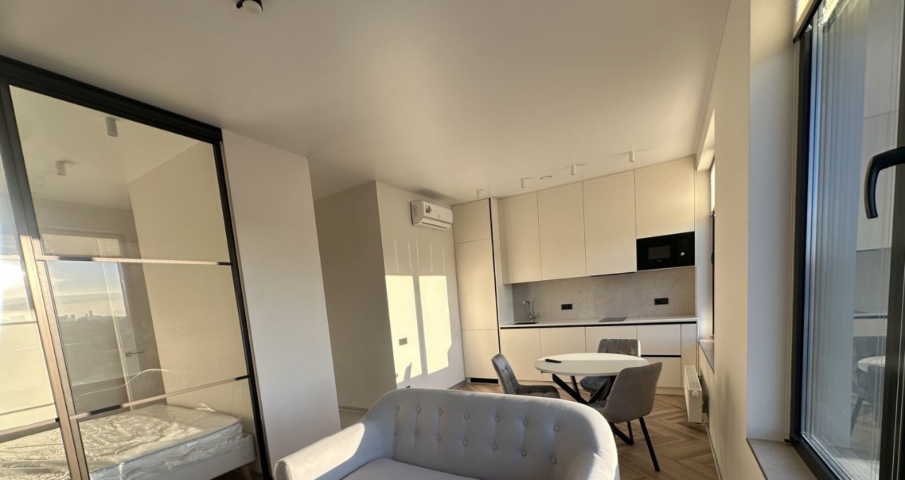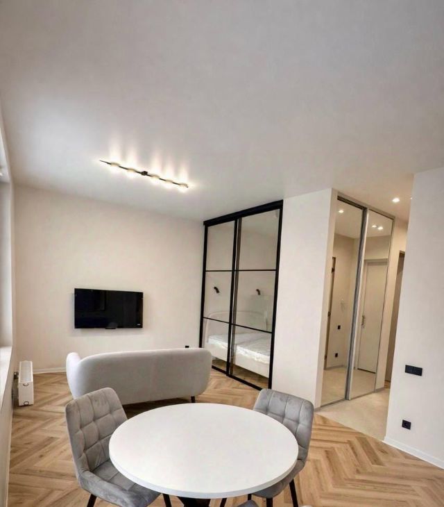 Функциональная планировка : кухня гостиная, спальня изолированна ( отдельный вход в спальню, также ее можно полностью изолировать шторами блэкаут)