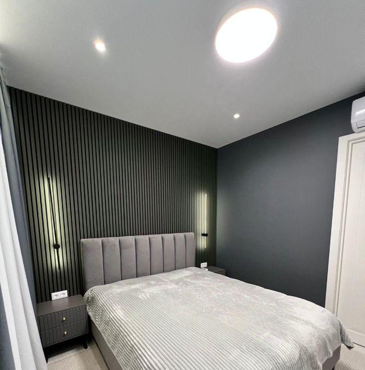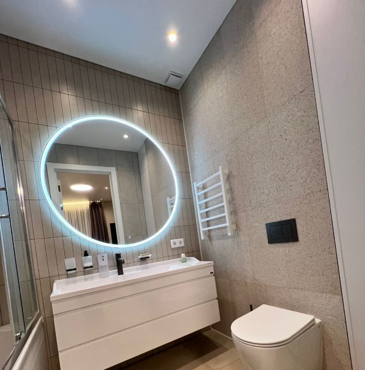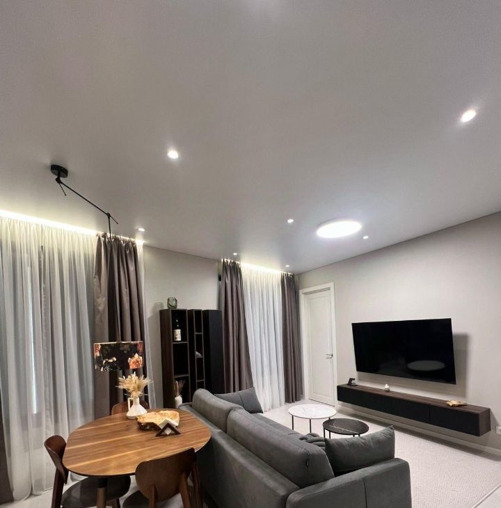 Квартира оформлена в дизайнерском стиле и полностью меблирована. В наличии вся необходимая техника: кондиционер, холодильник, посудомоечная и стиральная машины, телевизор. В ванной комнате установлена ванна. Приятным бонусом станет уютная мебель на кухне и в комнатах, что позволяет сразу же заселиться и начать жить без дополнительных забот.