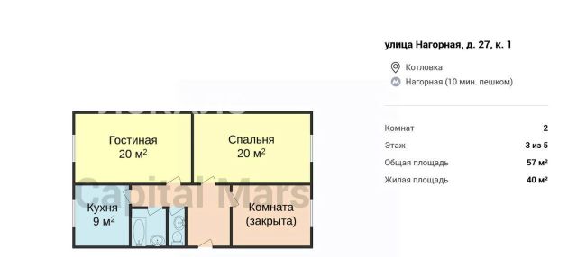 2-к кв. Москва Нагорная ул., 27К1 (57.0 м²)