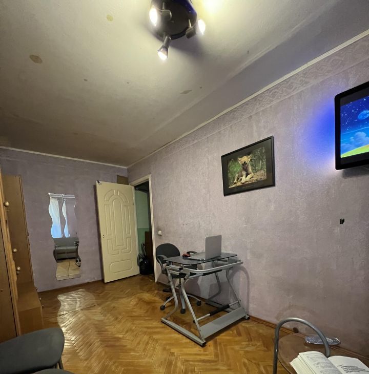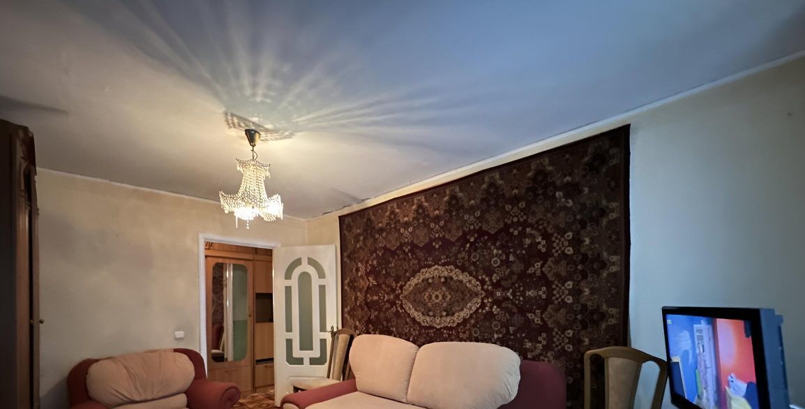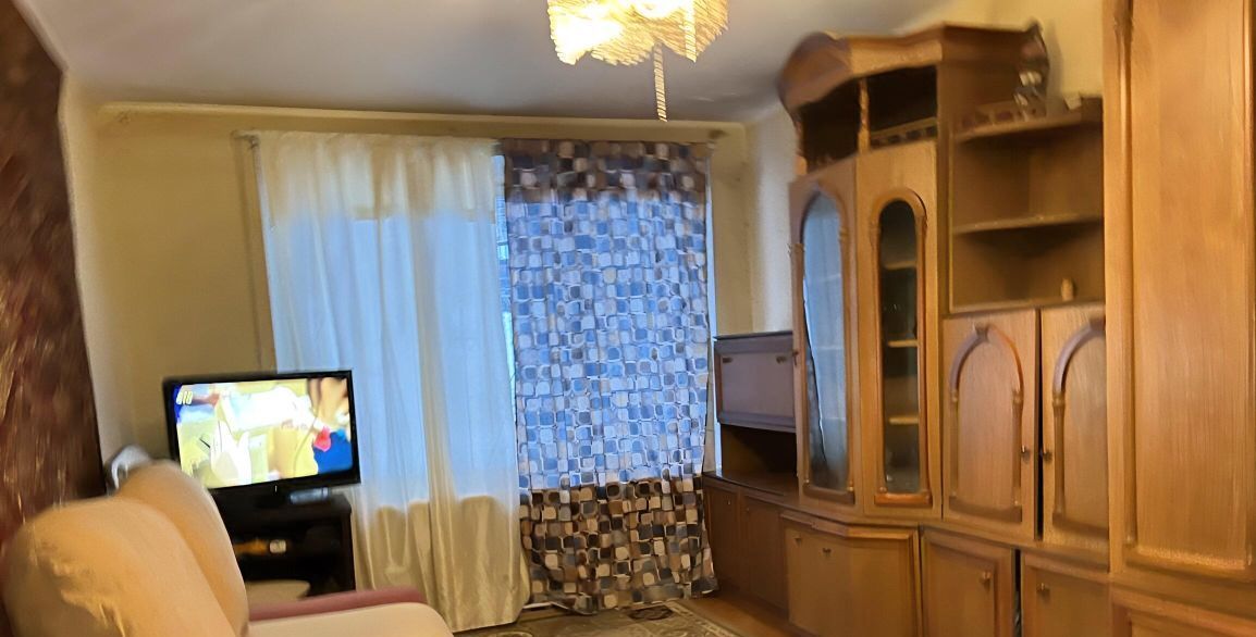 Полностью меблирована: гостиная: мягкая мебель-раскладной диван и раскладное кресло; стенка гарнитур, телевизор; спальня: угловой раскладной диван, стенка горка, телевизор, компьютерный стол, стулья, кофейный столик, зеркало.